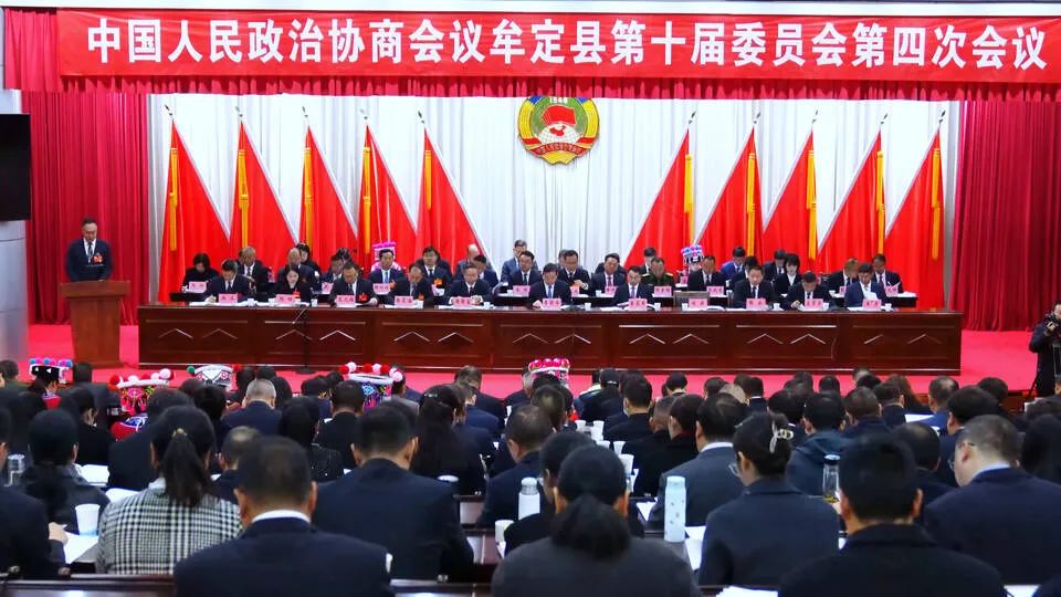 在政协牟定县第十届委员会第四次会议上,县政协主席刘云代表县政协常委会向大会报告工作。