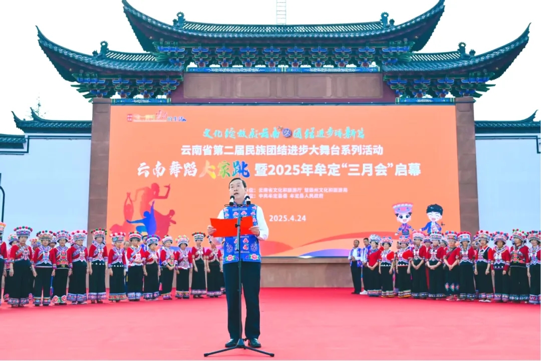 千年跳一脚,百年赶一会。4月24日上午,牟定县城、庆丰湖畔歌飞扬、舞翩跹,城乡大地沉浸在一派欢快喜庆的气氛中,云南省第二届民族团结进步大舞台系列活动——云南舞蹈大家跳暨2025年牟定“三月会”盛大启幕。