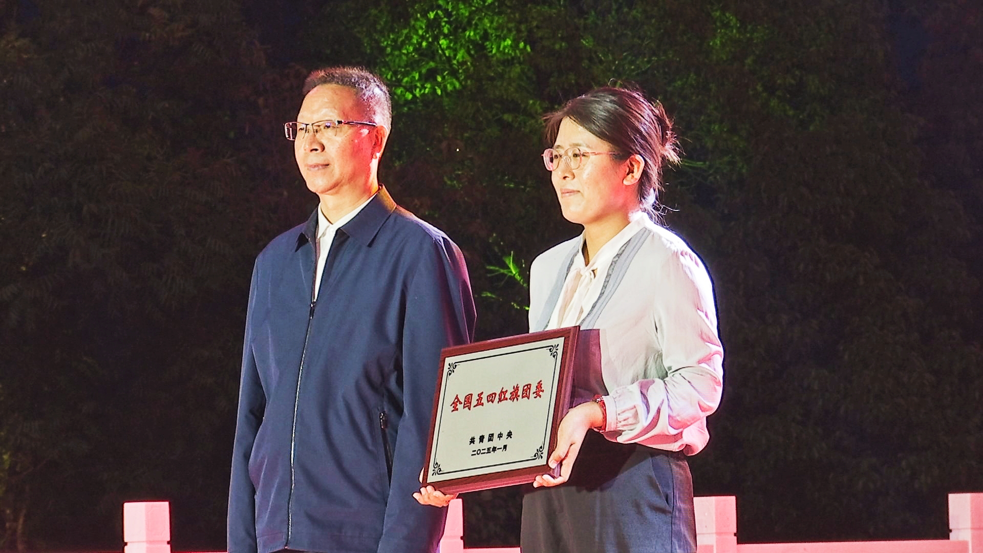 本次文艺晚会由共青团牟定县委、牟定县少工委联合举办,晚会的主题是“弘扬五四精神 青春挺膺担当”。为充分发挥青年典型模范带头作用,进一步激励全县广大青年胸怀爱国爱民之志,弘扬五四精神,担当民族复兴大任,晚会为荣获“全国五四红旗团委”荣誉称号的江坡镇团委颁发了奖牌。