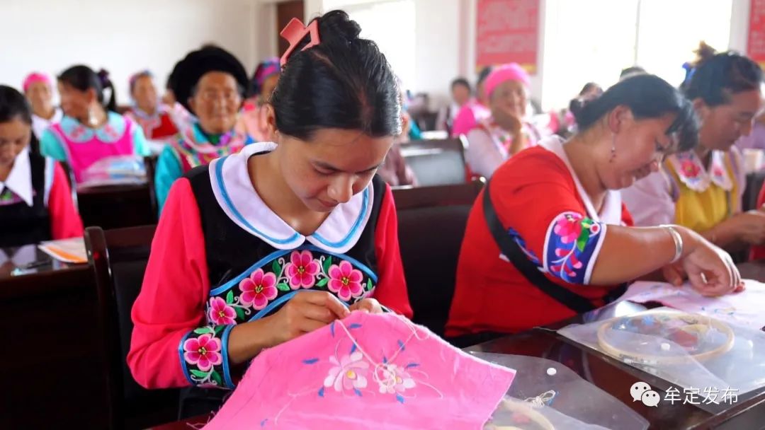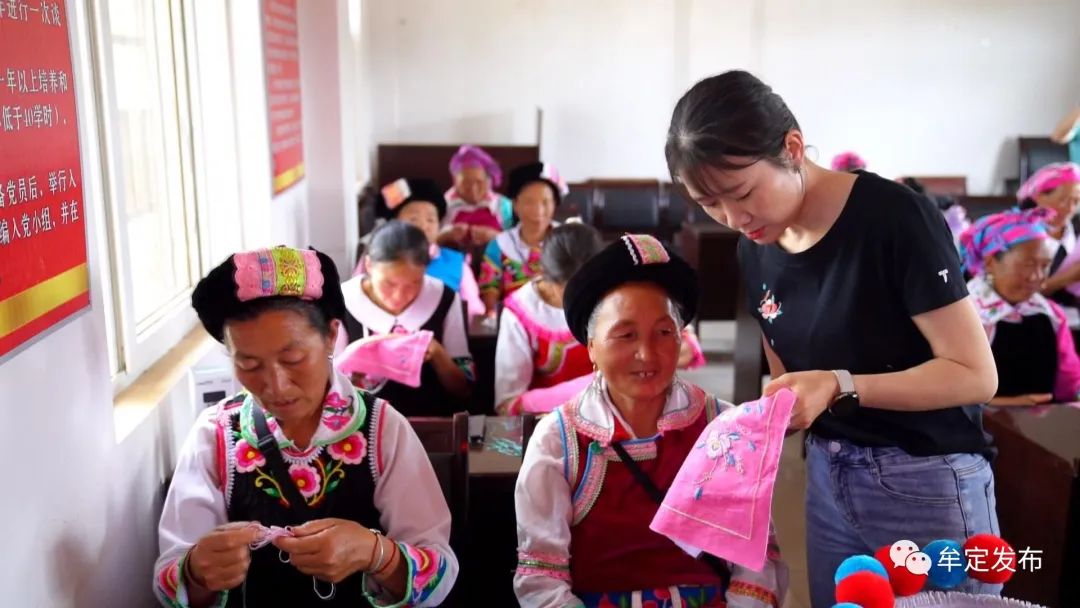盛果村是一个典型的少数民族聚居村寨,因地质灾害,从原来的共和镇清河村委会溜口坡村搬迁到余丁村委会,并命名为象征幸福吉祥的“盛果村”,村里的彝族妇女人人能拿针、个个会绣花,但缺少把绣片变绣品、把技能变收入的技巧和方法。培训班上,授课教师除了讲授刺绣基本技能外,还着重从产品设计、品质提升、市场把握、短视频制作及营销等方面进行理论与实操相结合的培训,让移民群众及周边村组妇女们受益匪浅,茅塞顿开。