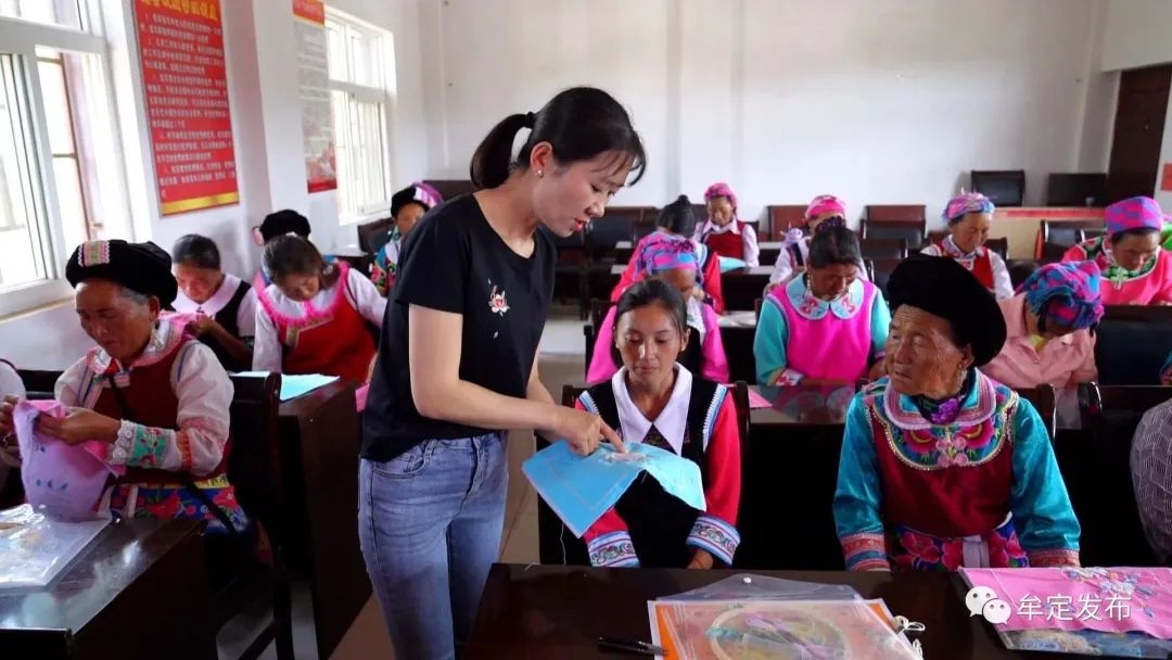 近日在牟定县共和镇余丁村委会举行的2023年大中型水库移民民族刺绣培训班上,牟定彝绣能手、民族服饰非遗传承人普明惠从一个小小的荷包入手,正在给移民妇女们讲解图案设计、绣线选择、颜色搭配、刺绣针法、包边锁边、流苏制作等技艺,理论与实践相结合、现场示范、手把手实操教学,让学员们在轻松、愉悦的氛围中,掌握了平时容易忽视的刺绣细节。