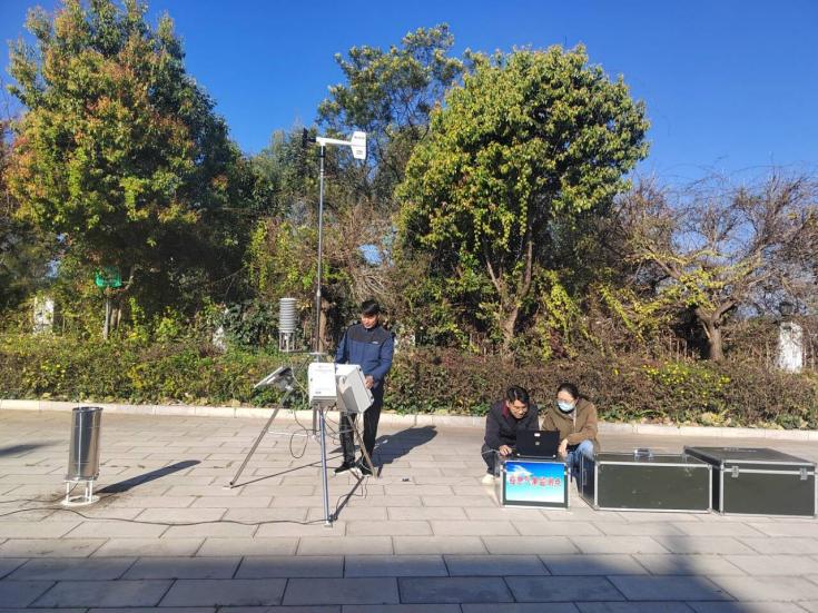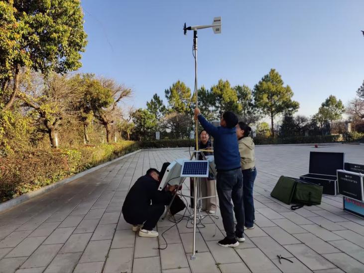 在演练现场,相关业务人员密切配合,迅速完成便携式自动气象站的安装和调试工作,在顺利读取温度、湿度、气压、风速、风向、雨量等气象要素实时数据后,同步做好与本地自动站观测数据对比校验工作,确保便携式自动站观测数据的准确性、及时性、可靠性。