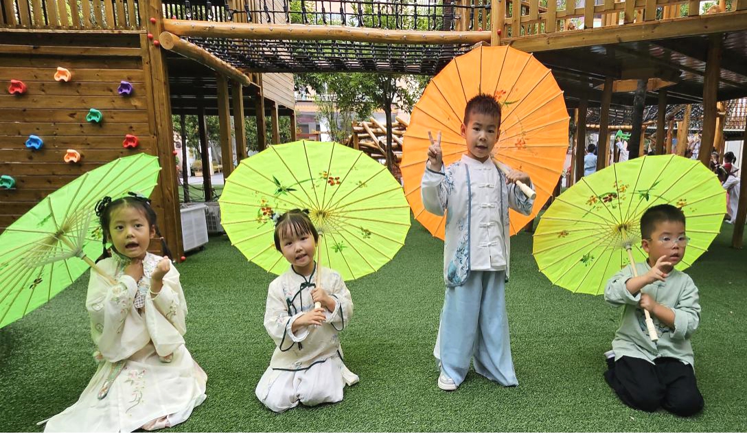 传统游戏闹中秋。在欢乐的游戏场上,汉服秀、抢月饼、摘果果、挂灯笼、投壶、套圈等传统游戏深受孩子们喜爱,孩子们在欢乐的氛围中共度中秋。