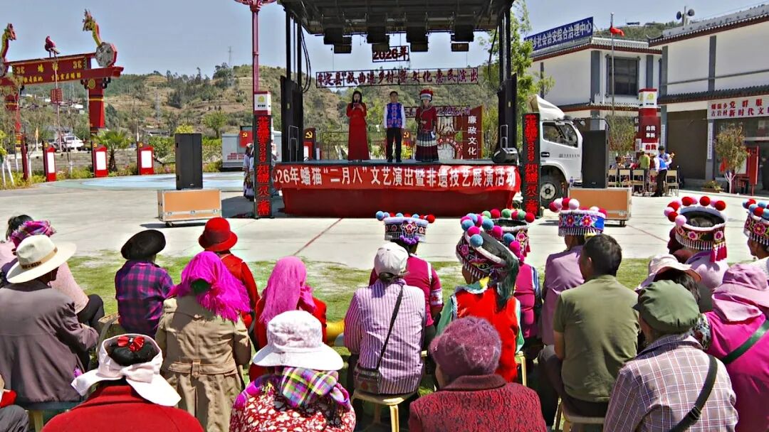 春风送暖踏歌起,彝乡欢歌庆佳节。3月26日,牟定县蟠猫乡“二月八”民族传统节日在古岩村委会大古岩村火热举行。本次活动以“踏歌蟠猫‘二月八’·欢聚同心大古岩”为主题,通过文艺演出、农特产品展销、惠民政策宣传、爱心义诊等系列活动,生动展现蟠猫乡浓郁的民族风情和乡村振兴的蓬勃活力,吸引了县内外游客、当地群众欢聚一堂,共庆传统佳节。