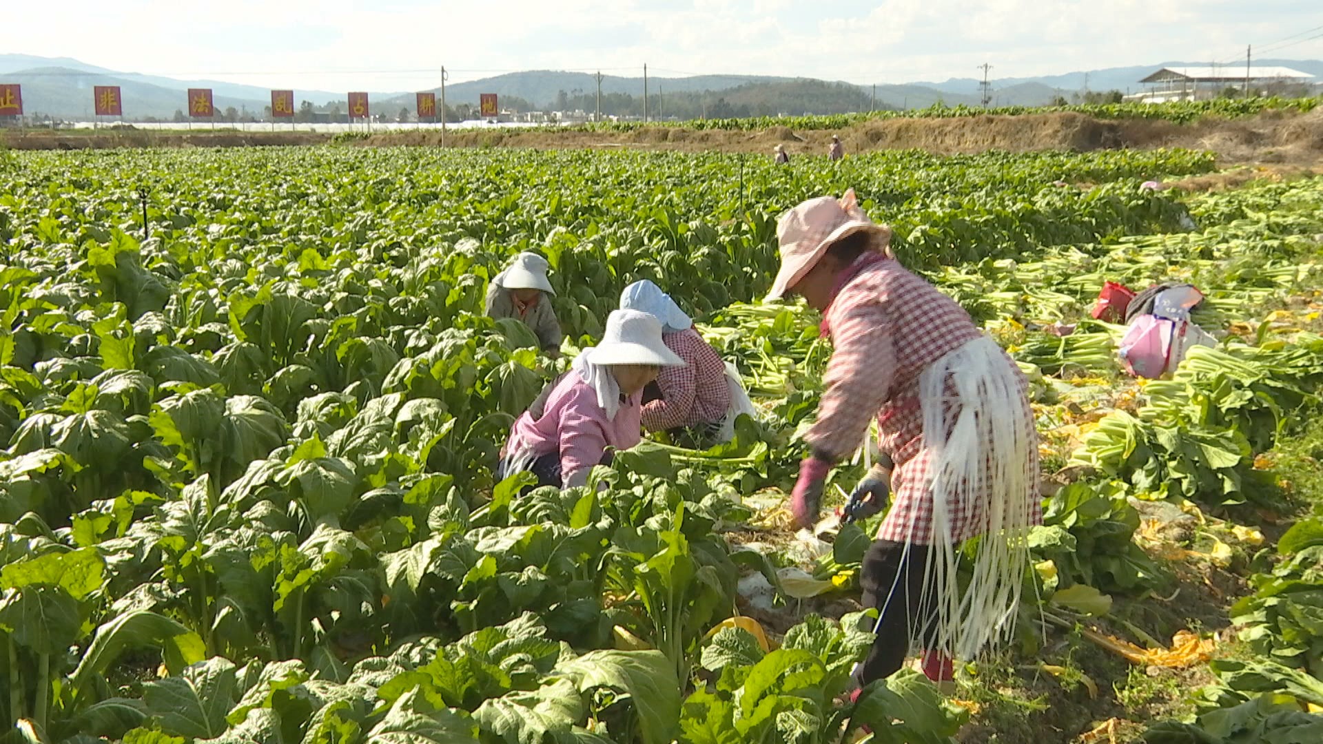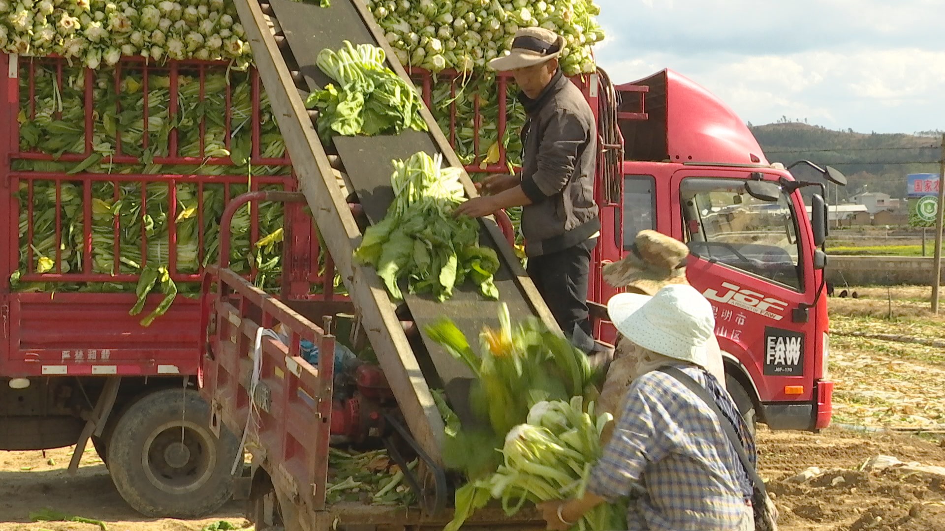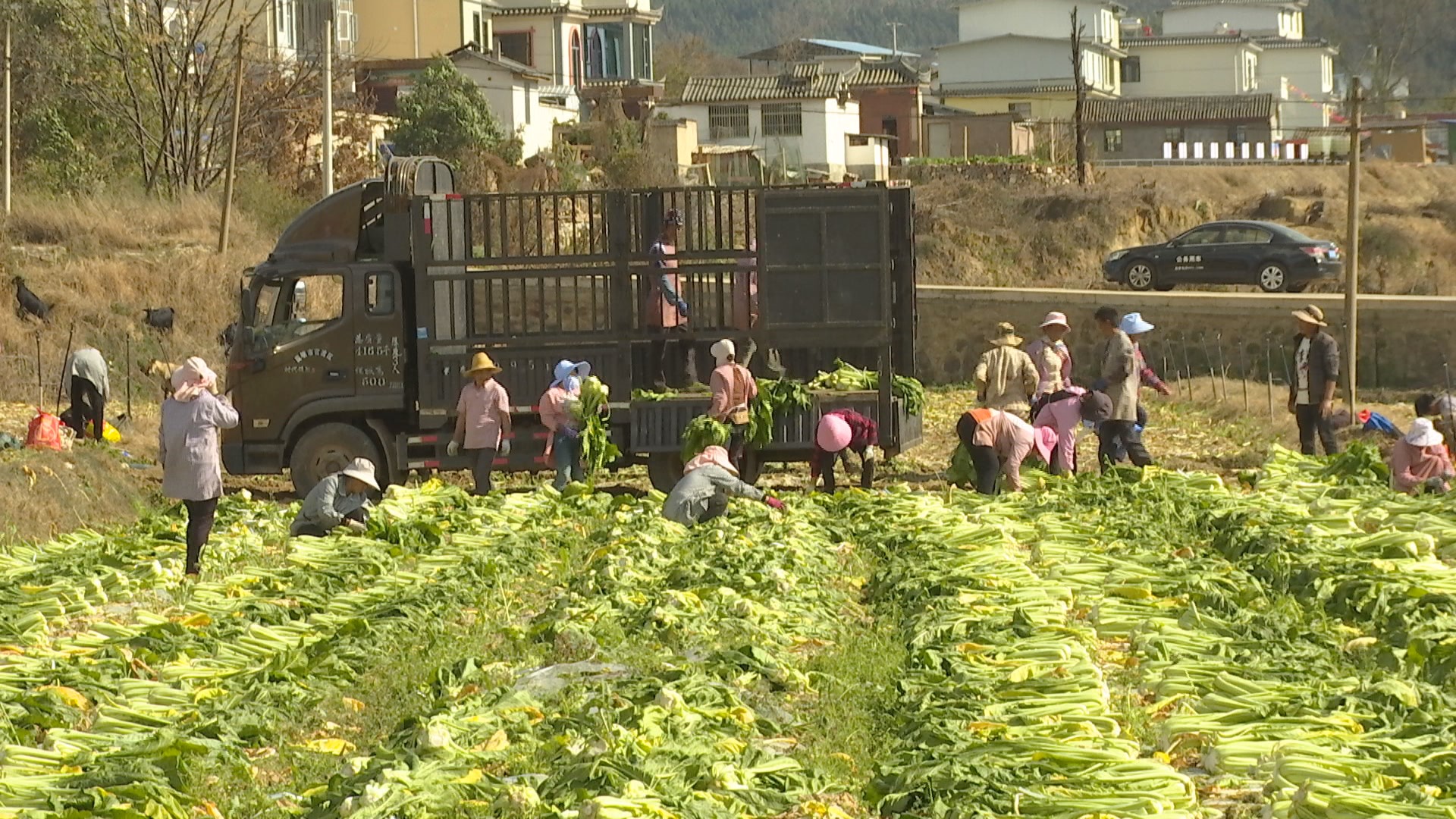 时下,正是牟定县江坡镇粉杆青菜采收季。种植大户和打工农民在田间地头忙着粉杆青菜的收割、绑扎、装车,按订单的要求完成运输交售。粉杆青菜这一短、平、快的产业,正成为江坡镇富民增收的好产业。
