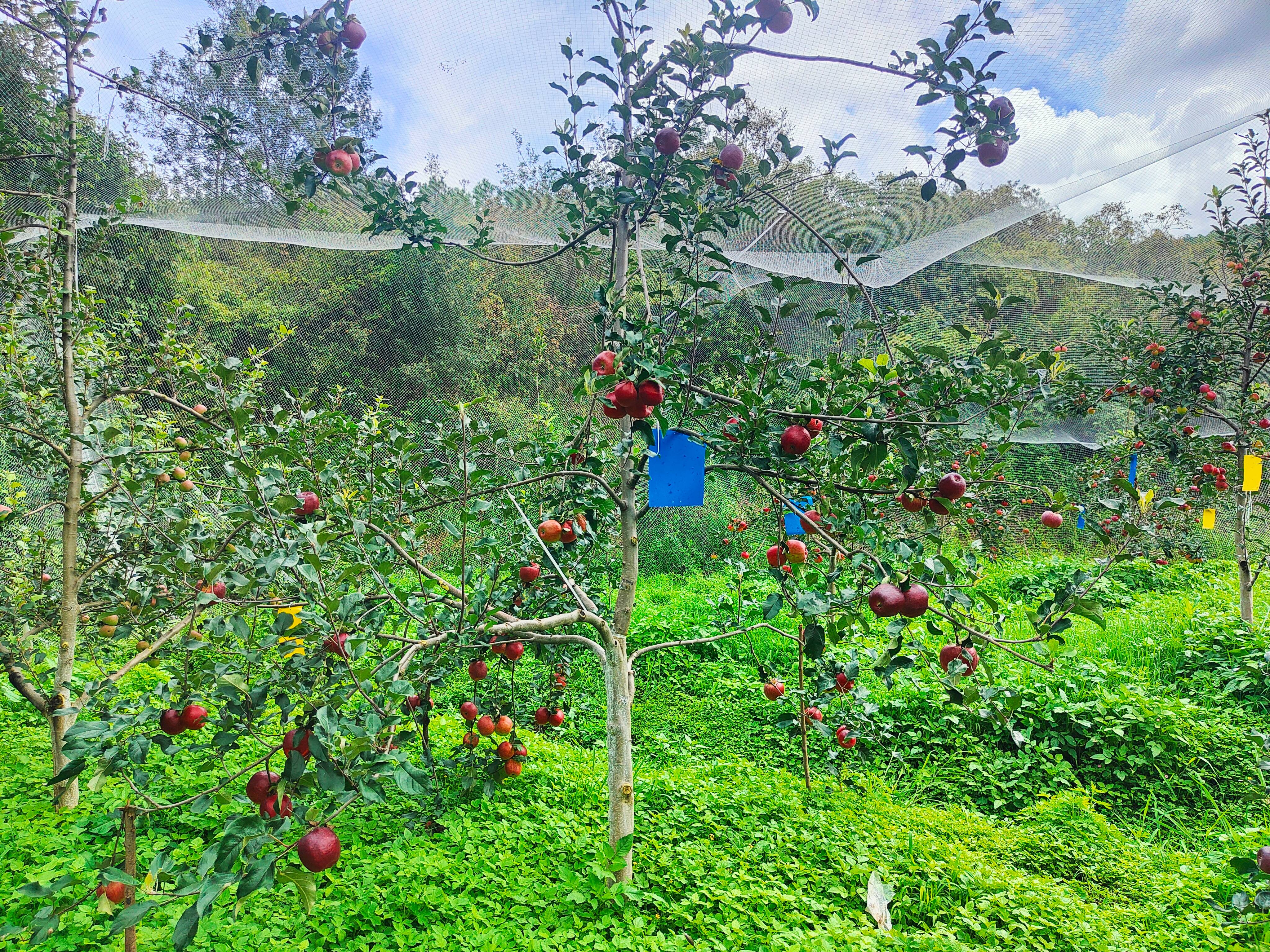 游客们口中又甜又脆的苹果是从昭通市引进种植的。2019年1月,河节冲村委会为发展壮大村集体经济,在镇党委、镇政府的协调和镇农业农村服务中心技术员的指导下,从昭通市购买了8个品种的苹果苗进行试验示范种植,由于当时村集体经济吃紧,土地便流转给牟定彝山红种养殖农场经营。
