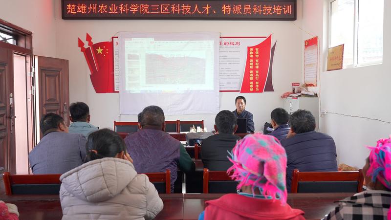 2022年以来,楚雄州农业科学院共争取了水稻、魔芋、花卉、牧草四个科技特派员项目,争取项目资金150万元,派出科技人员15人,深入基层一线开展水稻、魔芋、花卉、牧草生产技术指导培训,今年以来,楚雄州农业科学院共派出科技特派员7人,开展科技培训28场次,受训2783人,技术指导65次,发放资料1.8万份,通过人才下沉、科技下乡,助推广大农村地区产业提质增效、群众增收致富。