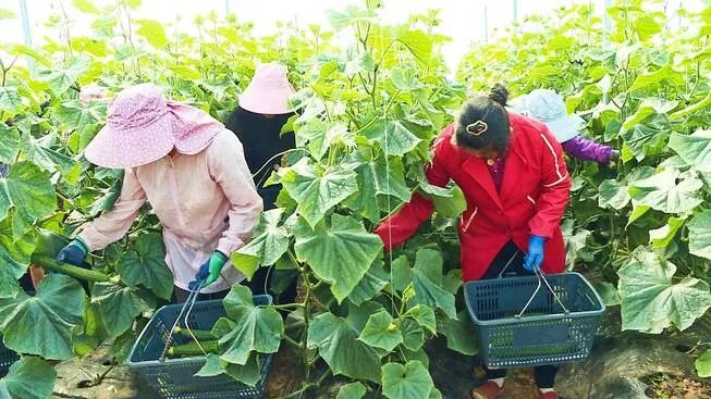 “我家离这里很近,我每天来采摘黄瓜,工资是80块一天,在这儿干活既可以接送小孩,又可以照顾老人。”共和镇代冲村委会沙长甸村村民杨桂萍说。