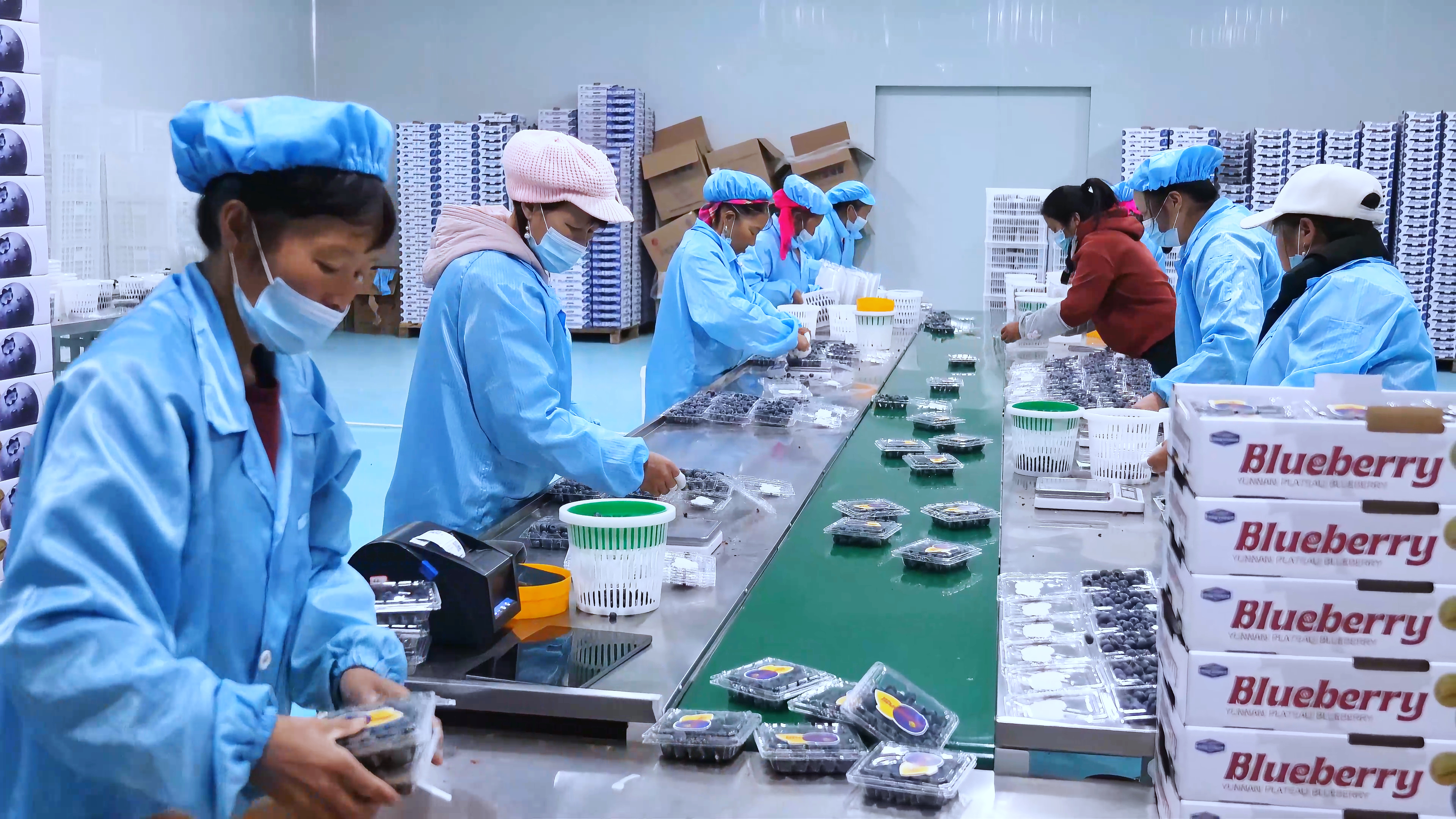 戌街乡碗厂村委会干海子村曾经是猕猴桃种植基地,后来因为种植企业倒闭留下了闲置的林地资源和租金债务。2023年,戌街乡通过招商引资引进珀莫娜农业生物科技(云南)有限公司接手猕猴桃种植基地,化解了租金债务,并和企业签订了联农带农协议,企业先后投资6000万元打造600余亩高端蓝莓种植基地,带动日均用工200余人,每年为群众稳定增加60余万元的土地流转金和11万元的村集体经济收入。珀莫娜农业生物科技(云南)有限公司负责人张甫说:“现在有400余人在基地务工,每天的保底工资是120元,公司每年的劳务成本支出在1000万元左右,能带动很多农民增收就业。”