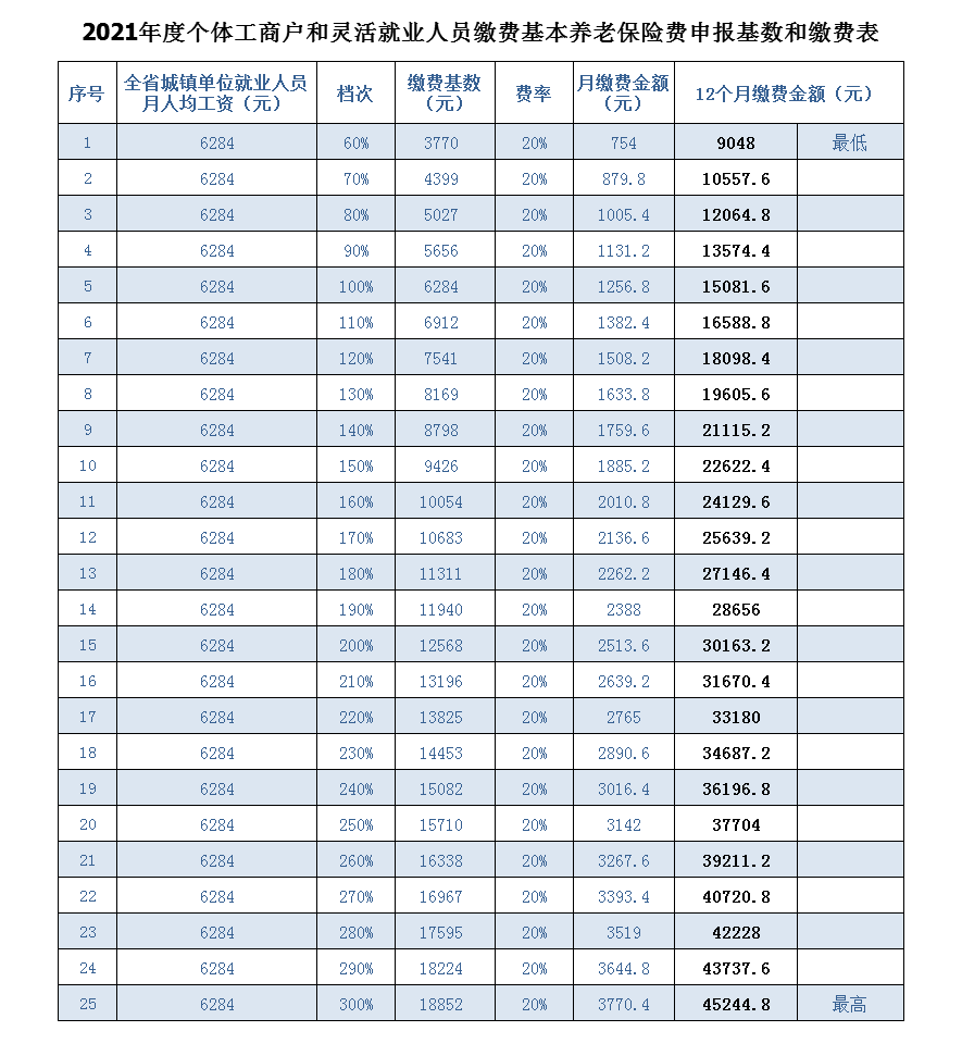 4、缴费档次如何选择?答:今年的缴费档次共有25个,最低为60%,9048元,最高300%,45244.8元,缴费档次在每年缴费前可更改一次,可以自由选择任一档次缴费。缴费比例为20%,其中8%记入个人账户。