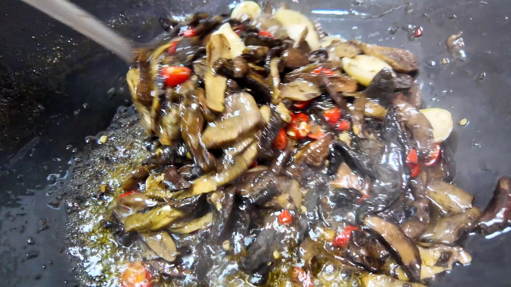 菌子在锅里滋滋作响