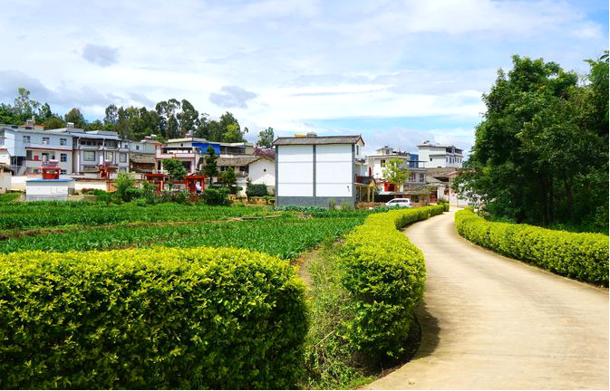 植绿一条入村道路。每个自然村在进、出村主干道两旁栽种桃、梨、杏、李、石榴、杨梅等适宜牟定气候条件的各类林果树木,建成一条村庄“景观大道”。