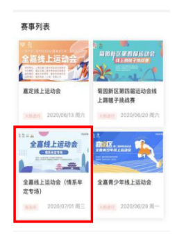 2. 点击“全嘉来赛”图标(图三),进入线上活动赛事列表(图四),选择情系牟定专场