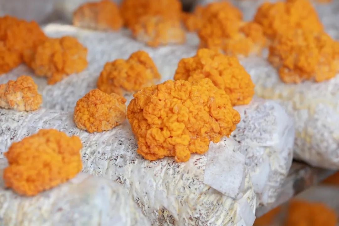 俗话说“火把节的鸡枞,九月的菇”,牟定还有一种人工种植的“黄金菇”——金耳。秋季正是金耳采收的季节,在新桥镇有家光伏食用菌基地,村民们俯下身子采下一朵朵个大、圆润、色泽金黄的金耳,供应着北上广大餐桌。即使“秋老虎”持续发威,但他们的脸上却满溢着丰收的喜悦。