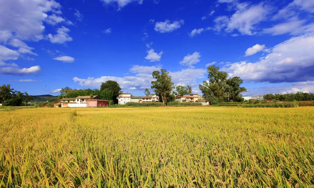 中秋过后,牟定各乡镇种植的水稻陆续成熟,金灿灿的稻谷沉甸甸的笑弯了腰,远远望去一个个小山村的稻田像铺上了满地的黄金,这是老百姓填饱肚子的口粮。