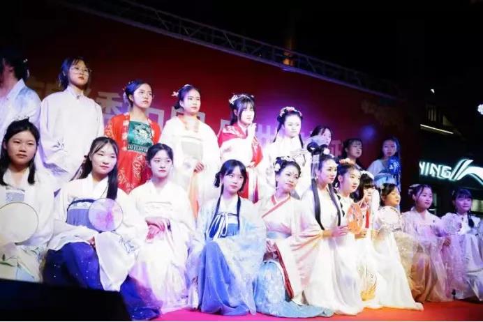 节日里的古镇可真热闹,广场上挤满了人,一场汉服走秀正在上演。台下也是光彩照人,大唐不夜城里的不倒翁小姐姐也来了呢!她高高的站在那里,高髻华服,一手持小扇,一手持小伞,摇来晃去,摆出各种造型,真是又美又骄傲。