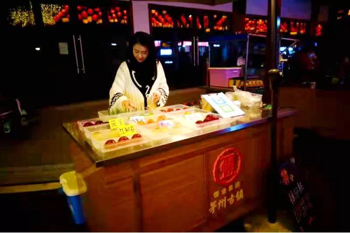 木质方形构架的摊点隔空排列着,除了一些工艺品,也有手工制品,手工寿司、手工钵仔糕、手工糖果、手工纱绸发夹。