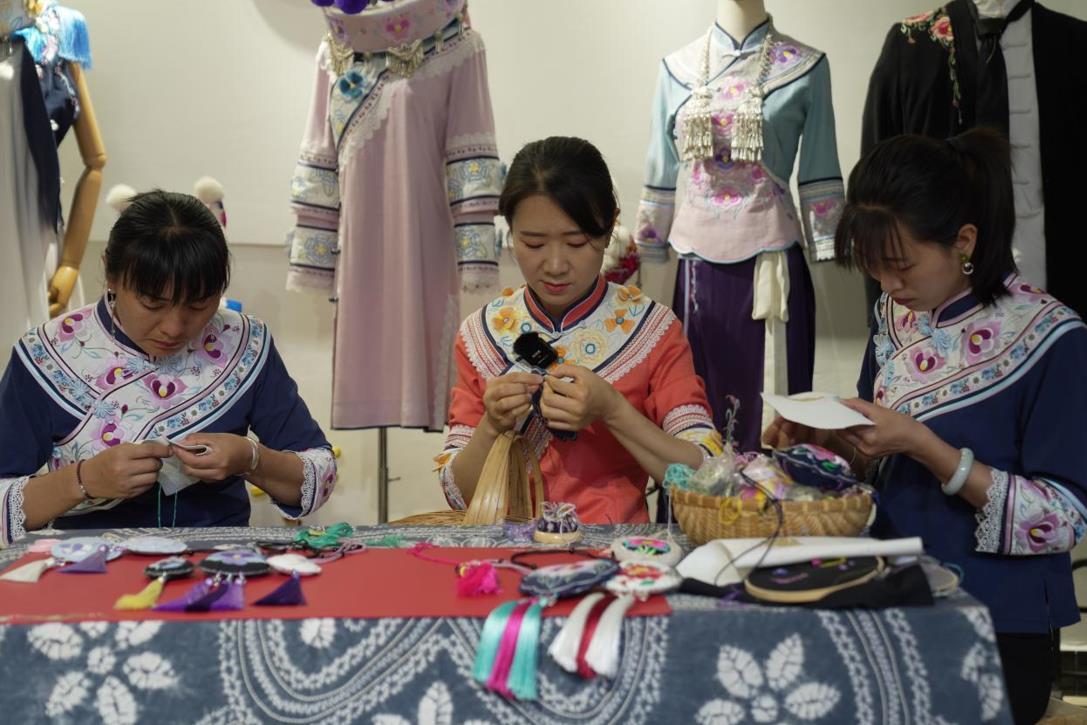 一年一度的端午节即将来临,云南省楚雄州牟定县彝和园内的绣女们,也开始忙碌了起来。她们把艾䓍等中䓍药装进一个个精心绣制的荷包里,送给亲人和朋友,表达驱凶祛邪、幸福吉祥的美好祝愿。