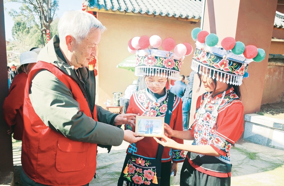 摄影服务区,在精心布置的打卡点前,银发志愿者们举着相机,耐心引导村民拍摄全家福。“来看镜头,笑一笑!对,就这样,茄子!”“老人家再往中间靠一点,好,完美!”快门声中定格下团圆的瞬间。活动特别关注留守老人和儿童,以及生活困难群众家庭,现场打印、装框并赠送全家福照片100余张,将这份“看得见的温暖”送到他们手中。接过相框的彝族群众拿着照片连声道谢:“这礼物太珍贵了!”村干部纷纷称赞:“银发志愿者们专业、热情、无私的服务,让我们的活动更热闹、更暖心,这种实实在在的帮助,为我们美丽乡村建设描绘了最美的风景。”
