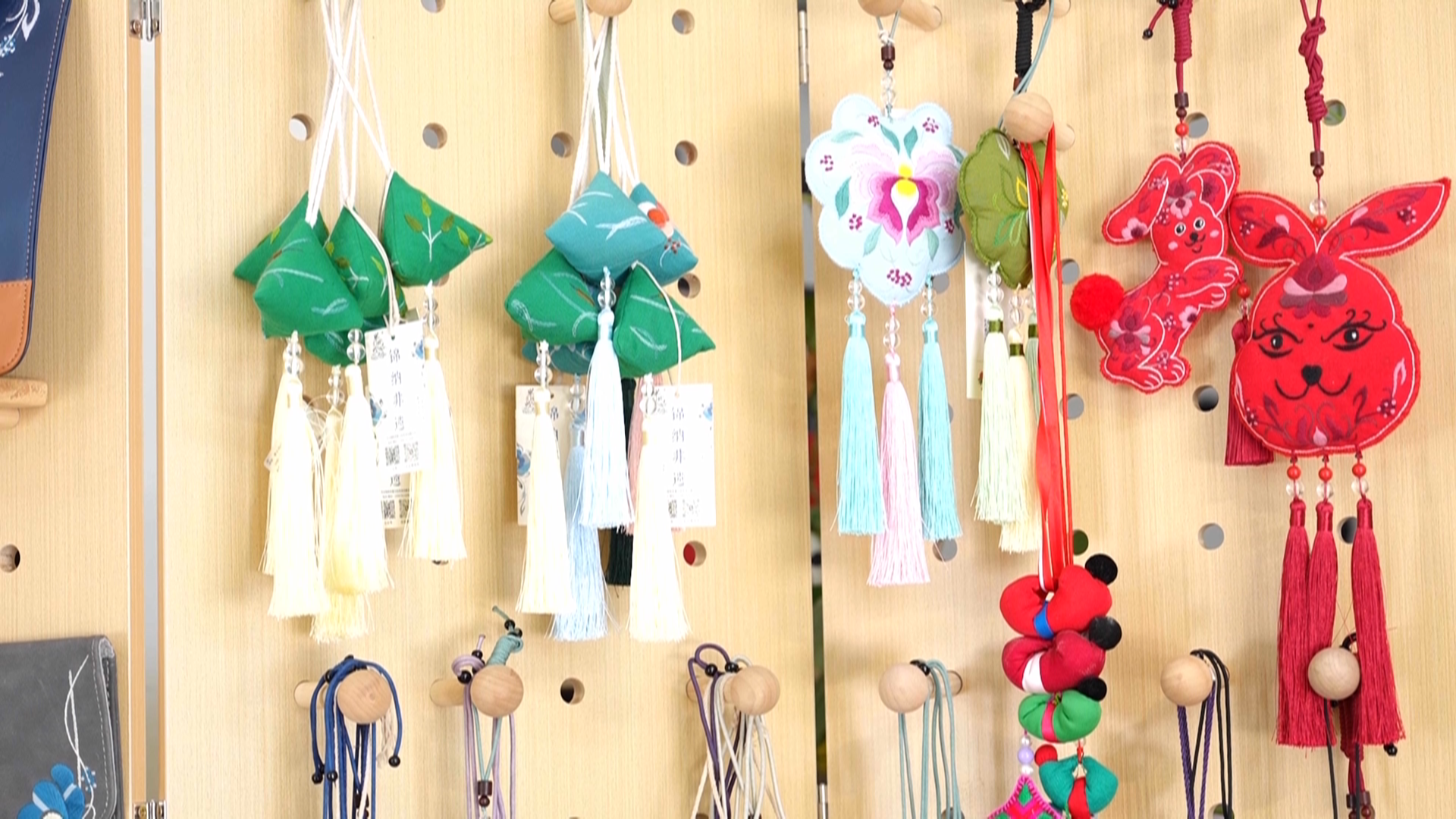 端午香包蕴藏了丰富的民族元素,填充了艾草等中药,每一件绣品均为手工制作,一针一线都体现了彝族绣娘对于传统技艺的热爱和坚守。牟定锦纳非遗文化传承有限公司负责人普明惠说:“我们将传统文化与彝族刺绣相融合,创作一些文创产品,这些粽子、兔子、金锁等形状的香包和龙头造型的荷包,深受年轻人的青睐。”
