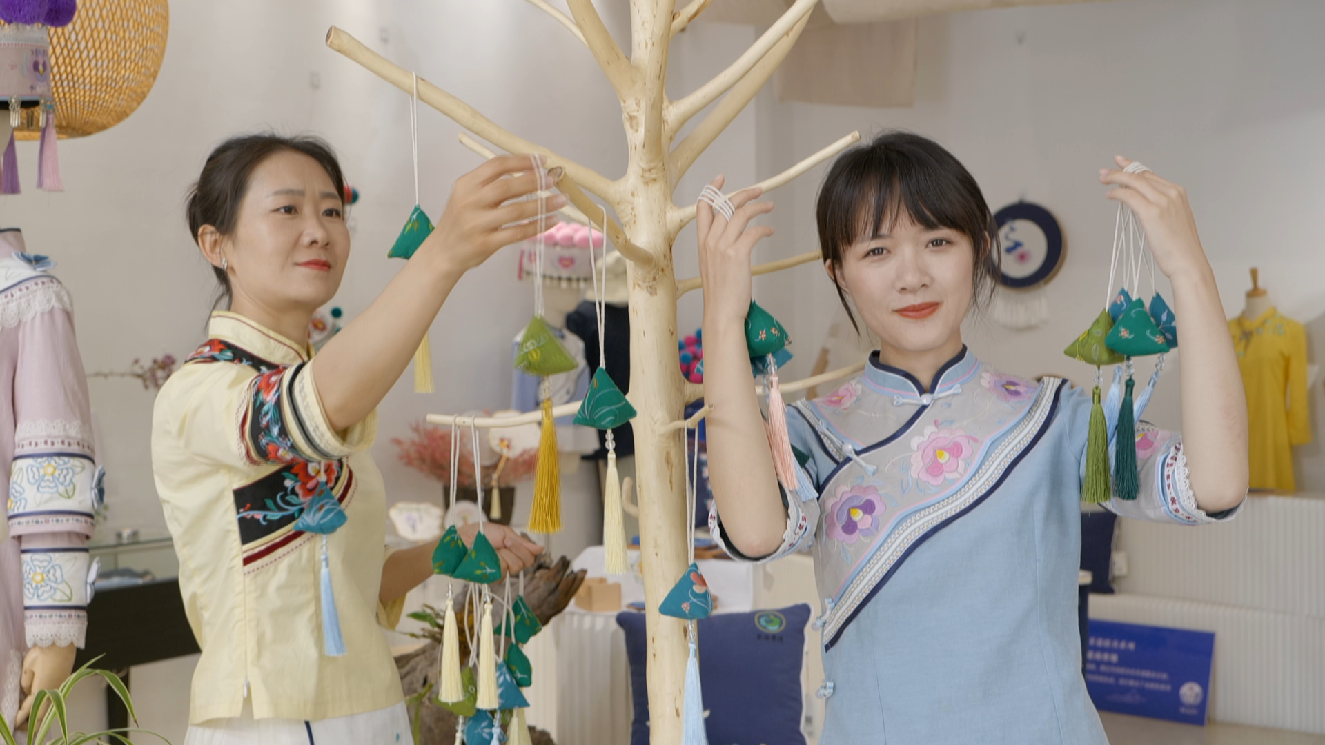 端午节作为中国传统佳节,吃粽子、划龙舟、挂菖蒲、挂香包等传统习俗已持续了上千年。为迎接端午节的到来,牟定锦纳非遗文化传承有限公司的绣娘们正忙得不亦乐乎,在飞针走线间小巧精致的粽子香包便在手中诞生了。