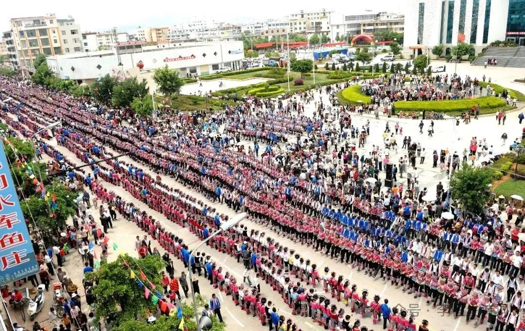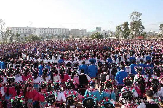 万人起舞舞翩翩,左脚盘旋笑脸甜。