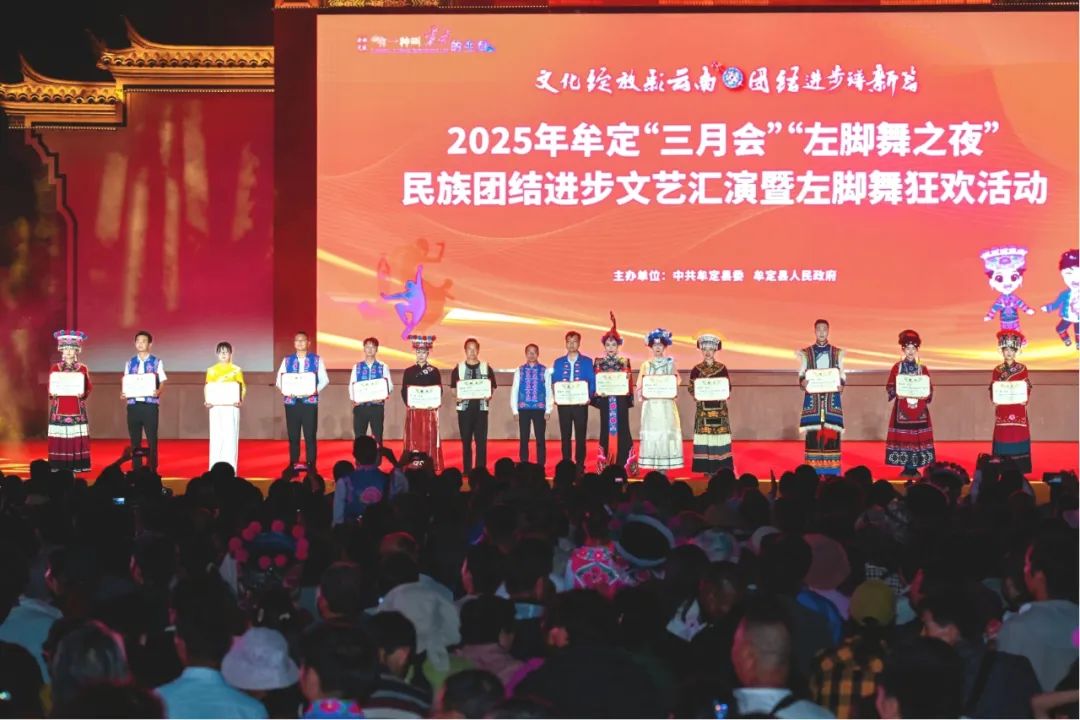 夜幕降临,华灯初上。4月24日晚,牟定县在化湖广场举办2025年牟定“三月会”“左脚舞之夜”民族团结进步文艺汇演暨左脚舞狂欢活动。