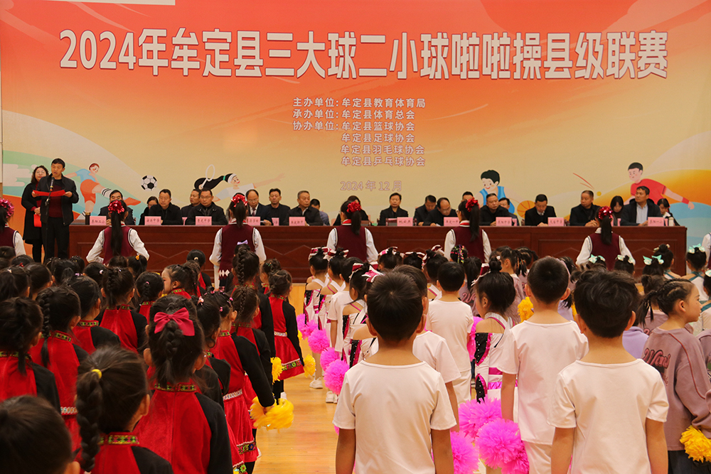 体育是为了让孩子们享受生命的美好,学校全面普及足球、篮球、排球、乒乓球、羽毛球、啦啦操,是为了通过更多体育项目的开设,让孩子们拥有更多运动体验,拥有更多美好童年的珍藏。开幕式上,牟定县教育体育局局长王鸿达致辞,并宣布牟定县2024年青少年校园“三大球二小球”啦啦操县级联赛开幕。