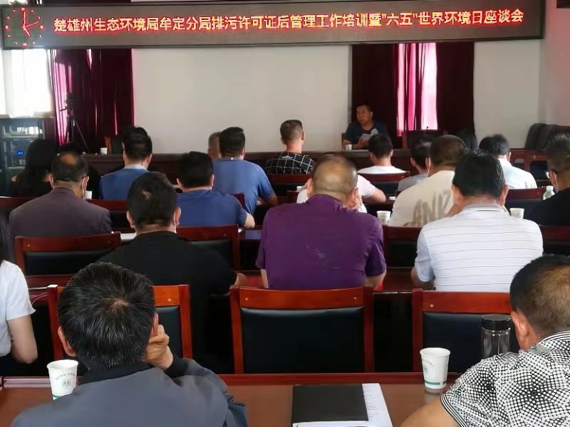 排污许可证规定的证后自行管理和信息公开工作。楚雄州生态环境局牟定分局利用“六·五”环境日系列宣传活动为契机,于6月3日邀请州生态环境局排污许可证核发技术单位工程师到我局,对我县30家排污许可证持证单位及分局相关股(室)工作人员进行排污许可证证后管理培训工作。