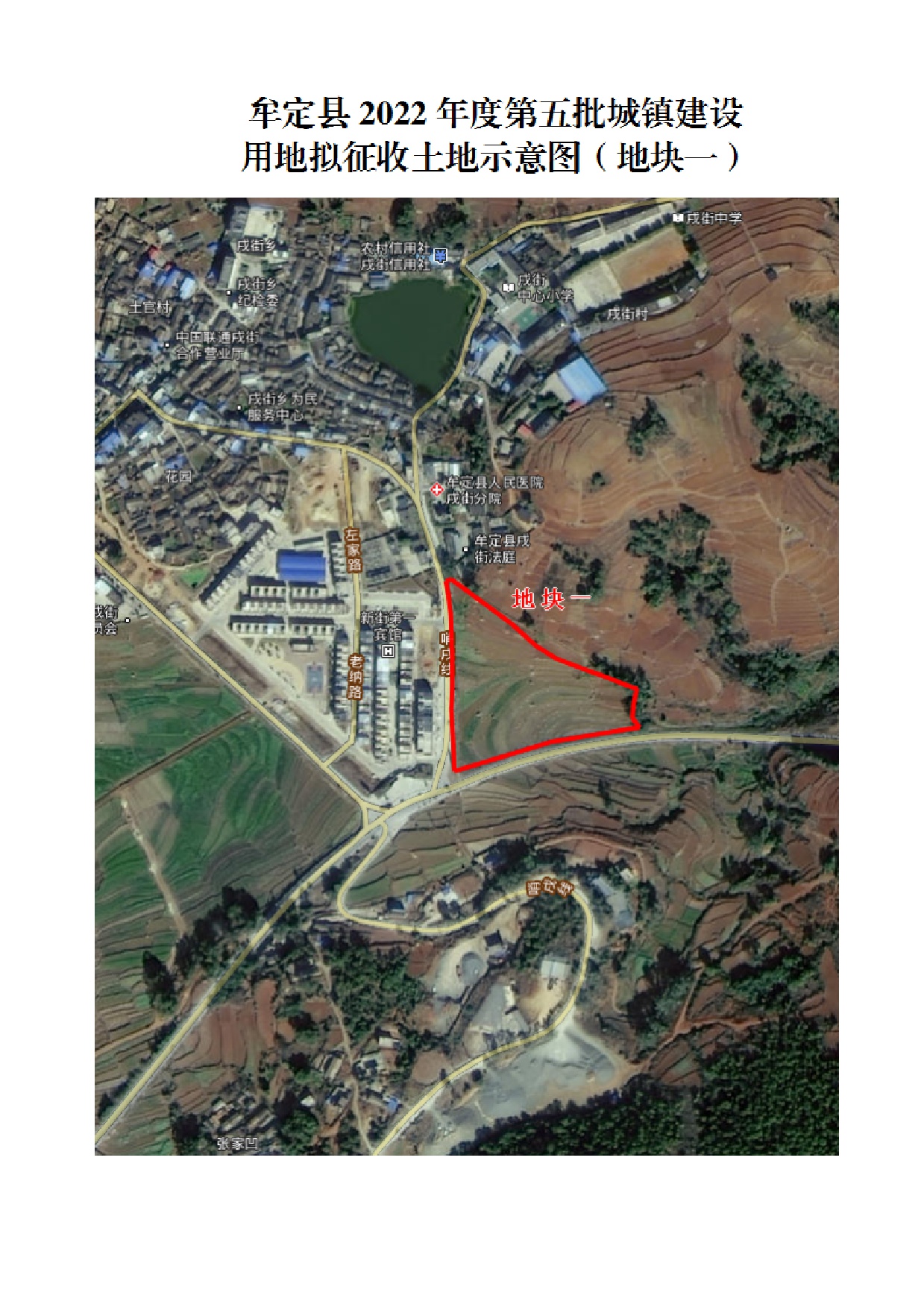 牟定县2022年度第五批城镇建设用地拟征收土地示意图(地块一)