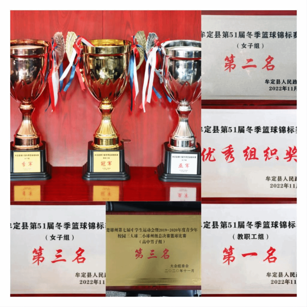 3.组织参加“2021年牟定县大众篮球争霸赛”,教师男队获得男子组第5名;教师女队获得女子组第3名;学生男队获得男子组第7名;高中女子获得女子组冠军。