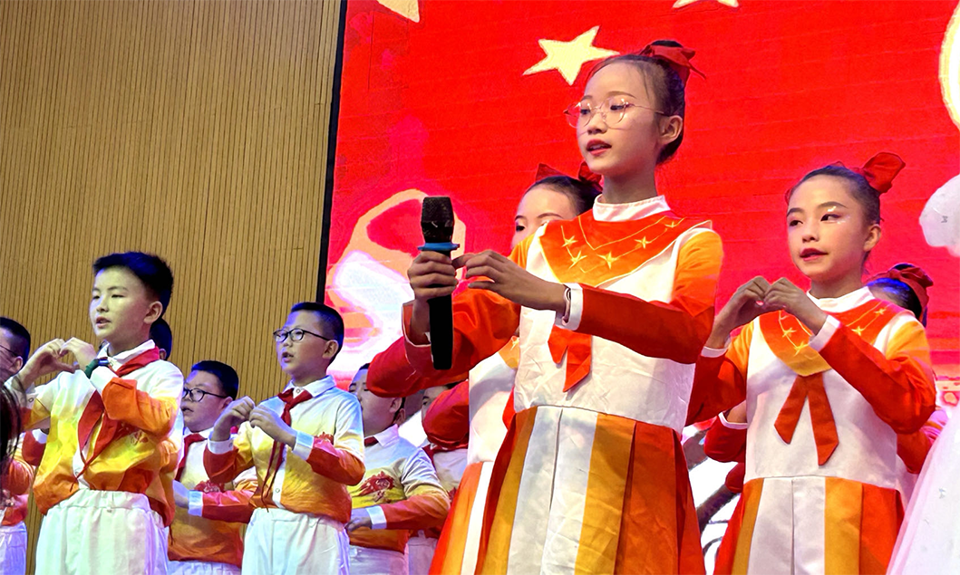 活动中,一年级的75名小同学在这个特殊的日子里光荣地加入了中国少年先锋队,大队辅导员对新队员提出了殷切的希望,并对各级各类获奖的师生及家长进行了表彰。