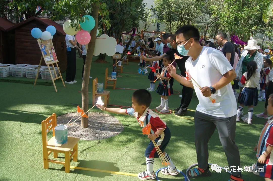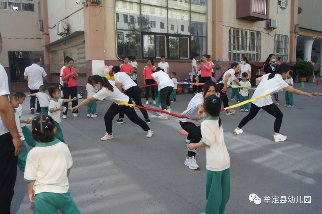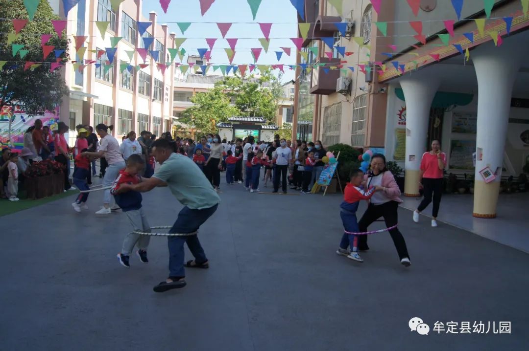 大班《抬轿子》《车轮滚滚》《小兔子过河》等富有挑战性的游戏中,家长和孩子们全力以赴、配合默契,现场精彩纷呈。