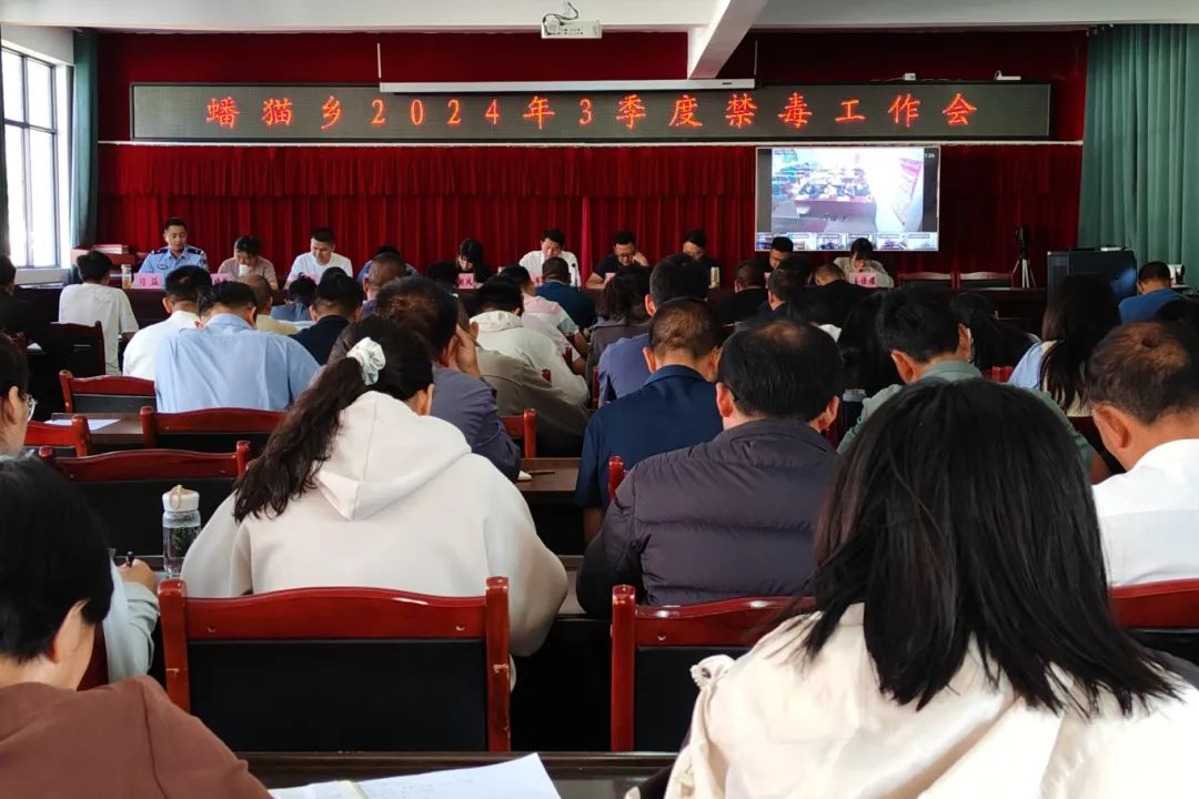 蟠猫乡召开2024年3季度禁毒工作会议,全乡党政班子成员、站所长负责人、各村委会书记、主任参会、会议以视频方式开至7个村委会。蟠猫派出所所长习益对近期禁毒工作作全面部署安排,提出具体的工作措施和工作要求。
