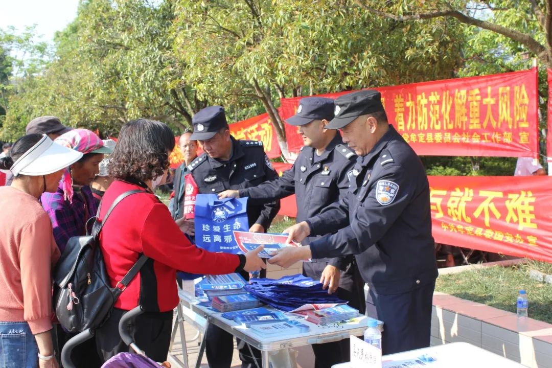 1月17日,在牟定县江坡镇市场上,牟定县公安局江坡派出所的民辅警支起“宣传摊”,引得群众驻足围观。