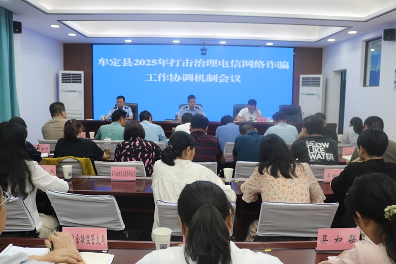 2025年5月21日下午,牟定县2025年打击治理电信网络诈骗工作协调机制会议在县公安局召开,县人民政府副县长,公安局长起成林同志传达省、州2025年打击治理电信网络诈骗工作协调机制会议精神,对打击治理电信网络诈骗工作作安排部署。全县打击治理电信网络诈骗工作协调机制成员单位、县公安局相关警种负责人30余人参加会议。