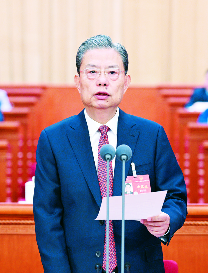 赵乐际指出,大会期间,代表们肩负党和人民重托,以饱满的政治热情和昂扬的精神状态依法履职尽责,认真审议各项报告和议案,会议成果充分体现了党的主张和人民意志的统一,彰显了全过程人民民主和国家根本政治制度的显著优势。
