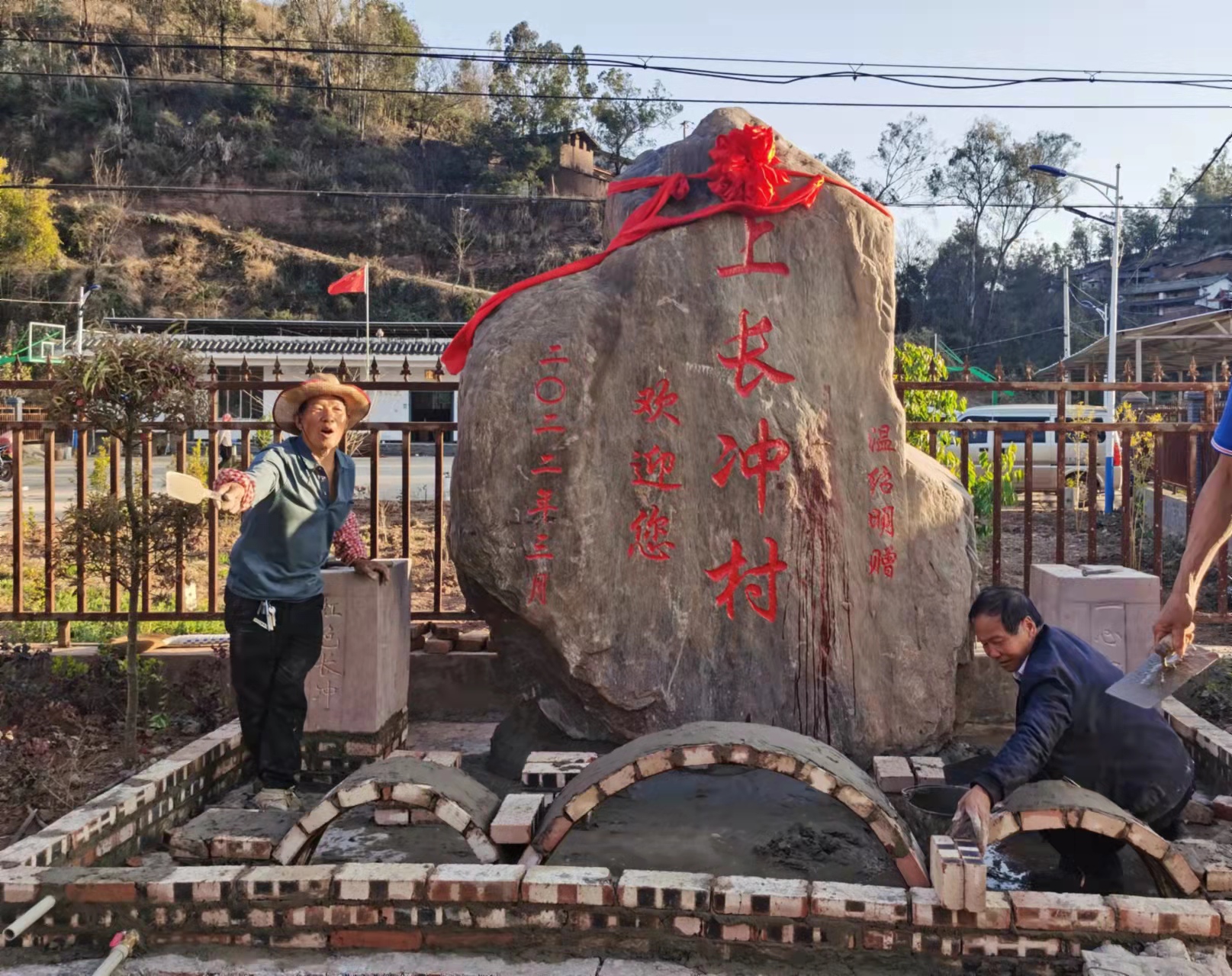 “一心向党、红色长冲”,在上长冲村文化室外,党员干部群策群力,各展所长,一揪一铲打造村间小景,为建设宜居宜业的新农村贡献力量。