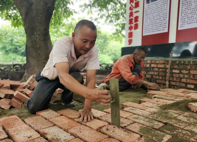 李万兴带领村民投工投劳打造美丽村庄。卢敏摄