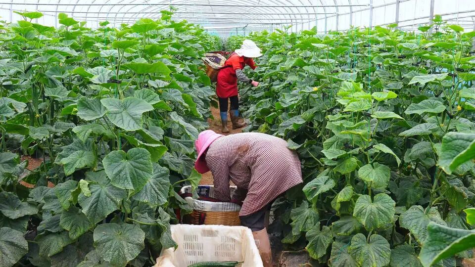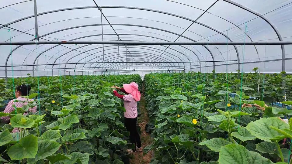 近年来,蟠猫乡凭借丰富的土地资源和服务优势,引进外地客商到辖区村委会流转土地种植黄瓜,让当地群众在家门口就能上班就业。既能照顾好家里的“一老一小”,还能够在黄瓜种植基地里上班赚钱,可让群众心里乐开了花。