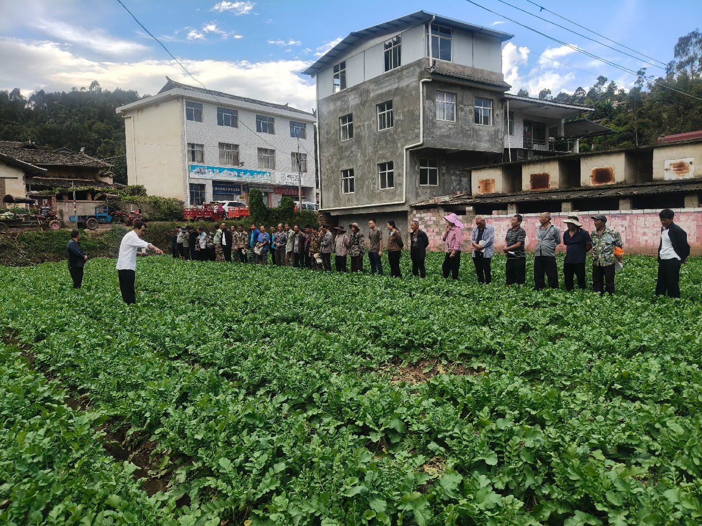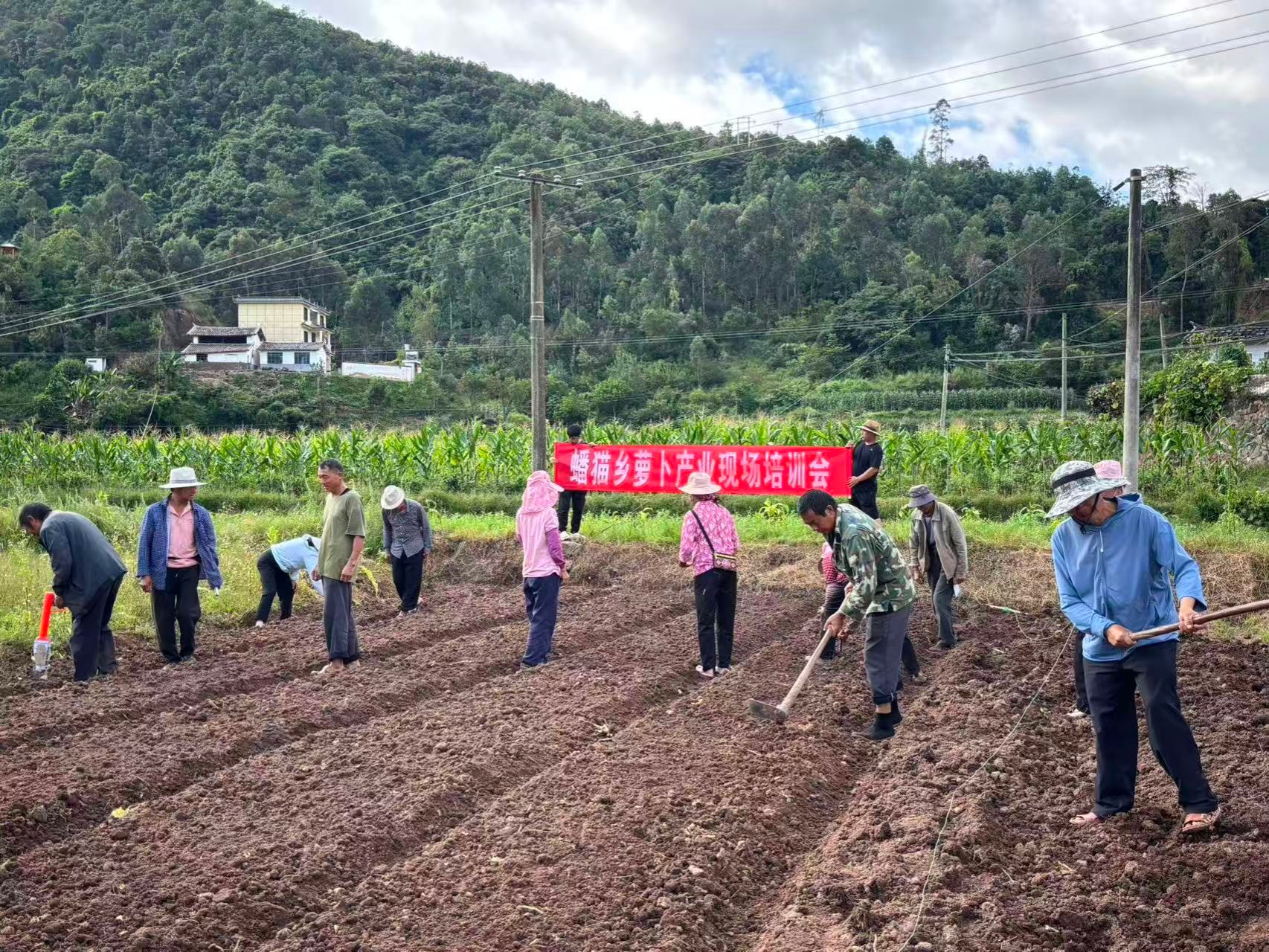 深化技术赋能,提升产业发展“硬实力”。为实现帮萝卜种植户提质量、增效益的目标,蟠猫乡积极与楚雄洪保农副产品开发有限公司建立合作,重点引入“韩白大根”优质高产萝卜品种,采取“烟田套种”“玉米田套种”“翻耕尽种”等方式进行种植。由企业技术人员和乡农业农村发展服务中心工作人员组成农技服务队,按照“包村联户”制度,深入村组、逐户走访种植农户,常态化开展技术指导服务,切实解决农技推广“最后一公里”问题。2025年以来,开展萝卜种植技术培训6次,各村开展“田间微课堂”20余场,累计培训农户700余人次。同时,积极搭建专家工作站,依托省农科院专家和农技人员推广试种新品种萝卜,大力培养“土专家”“田秀才”,推动萝卜品质跃升。