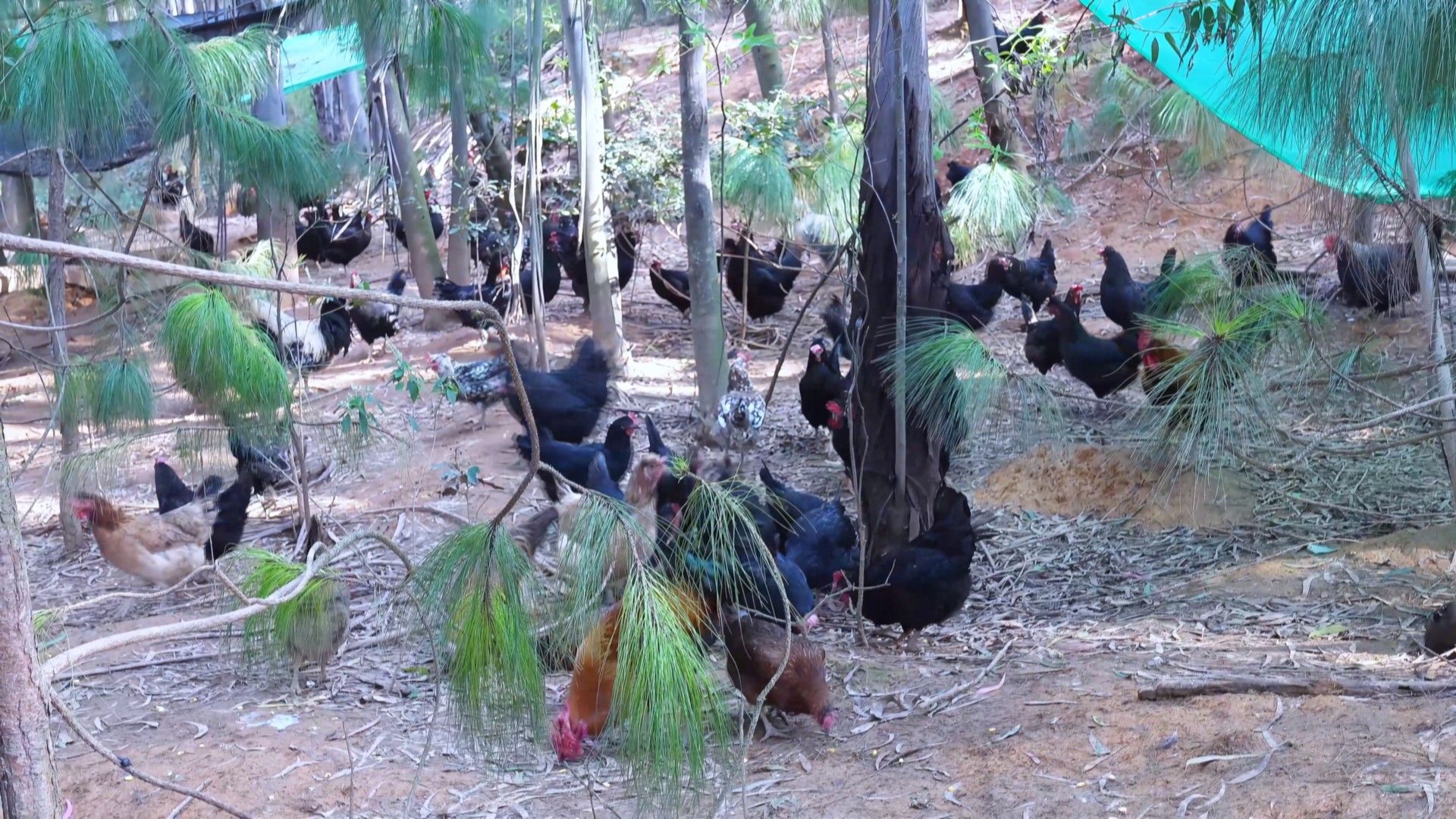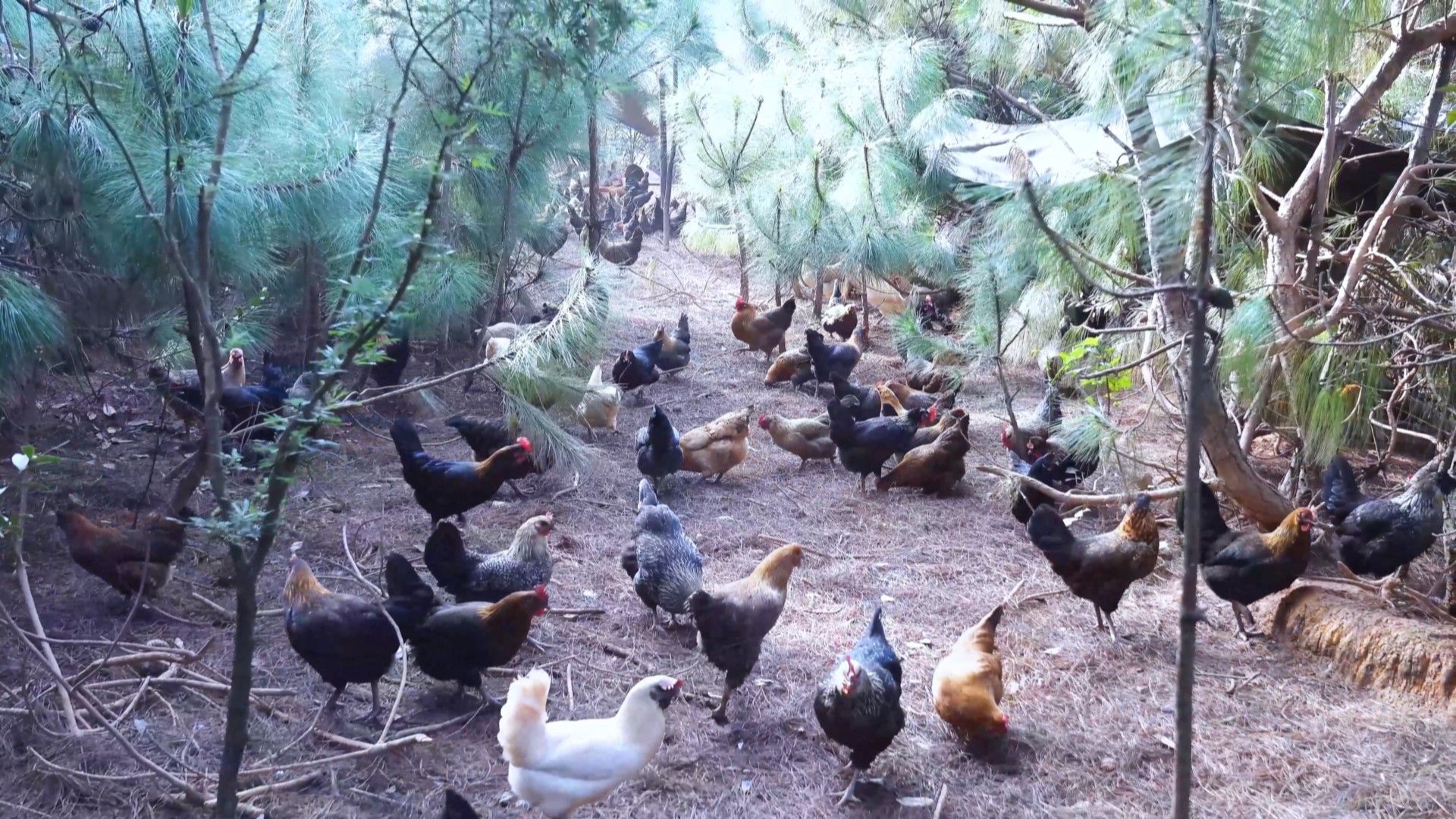 “采用传统、原生态的放养,晚上蹲在树上歇,到处跑、到处飞,如果要吃鸡,要拿像捞鱼一样的网兜,才能把它抓到。”公司总经理孟燕萍介绍说。这里的土鸡是传统的原生态放养模式,鸡群白天在广阔的山林里肆意奔跑、飞翔,晚上则蹲在树上或土洞里栖息,以山林间的杂草、昆虫为天然食物,以苞谷为生态饲料,让鸡群自由生长,全程不使用抗生素,确保每一只鸡都能在健康、自然的环境中成长。