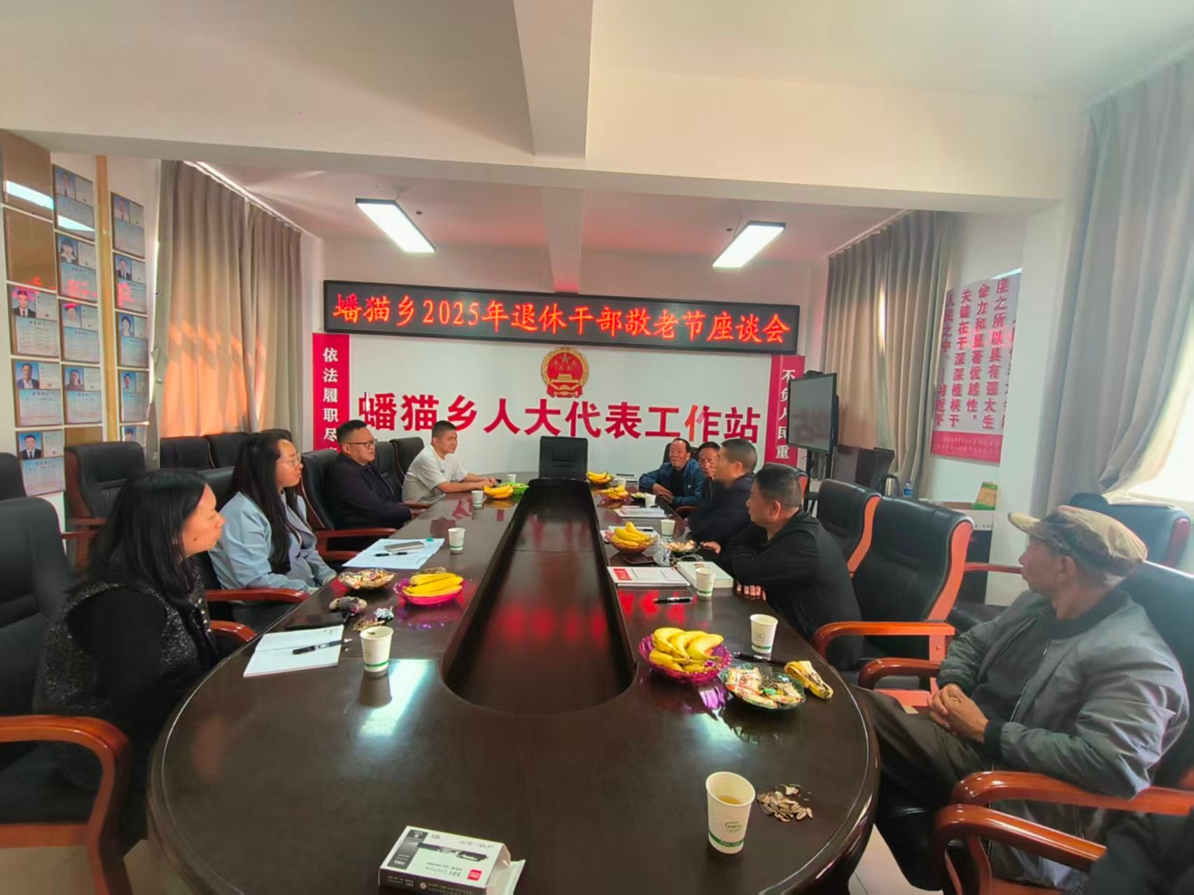 蟠猫乡组织召开2025年退休干部敬老节座谈会,组织老同志学习党的二十届四中全会精神,大家围绕社会治理、产业发展、群众增收等方面畅所欲言、建言献策,为全乡“十五五”规划编制注入“银发智慧”,贡献“银发力量”。会后,大家共同前往党建初心广场,庄严重温入党誓词,齐声高唱经典红歌,展现了老党员不变的初心与情怀。