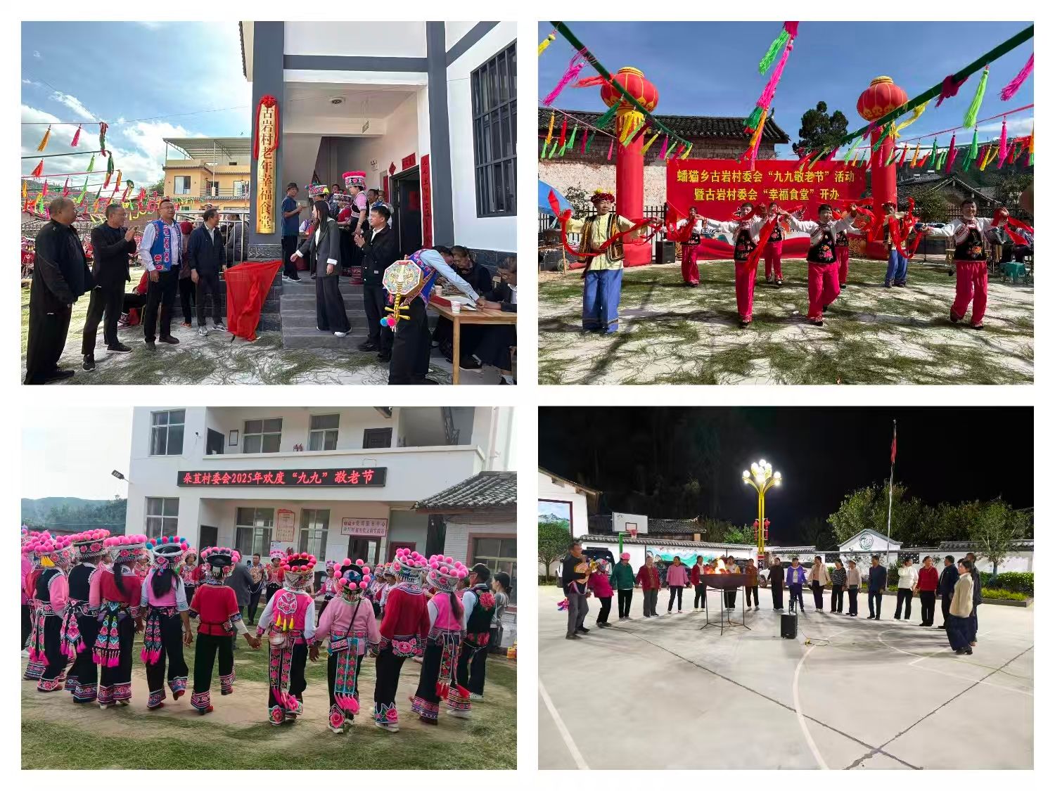 为让老年人在传统节日里感受文化暖意,各村组织开展文艺展演和左脚舞联欢活动。歌舞、花灯剧、乐器合奏等节目轮番上演、精彩不断。老人们身着节日盛装,手拉手尽情欢跳左脚舞,现场歌声飞扬、舞姿蹁跹,洋溢着一片欢乐祥和的节日氛围。活动期间,蟠猫乡古岩村委会老年幸福食堂在喜庆热闹中正式揭牌运营,为老年人提供了更便捷、温馨的用餐服务。