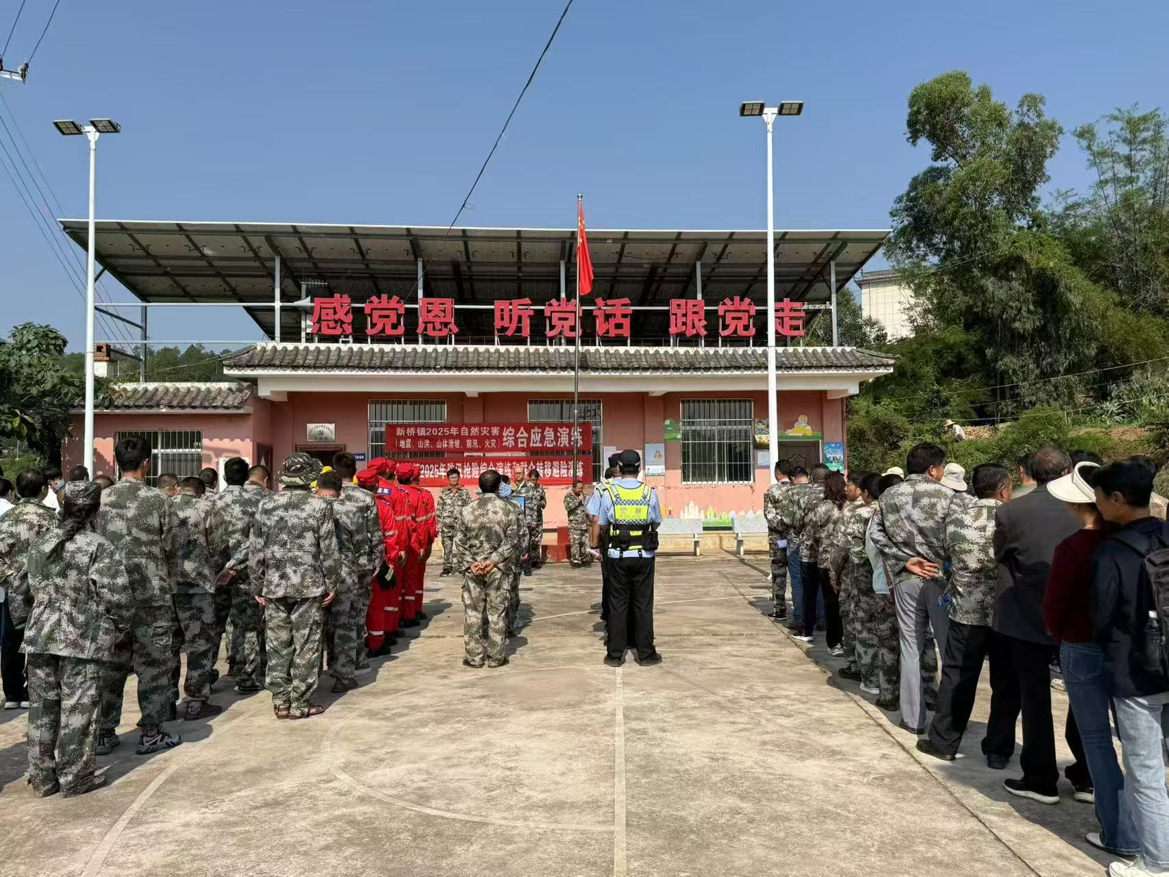 为做好2025年自然灾害防治工作,切实增强全镇人民群众的地震灾害风险防范意识,有效提高镇、村、组干部职工应对突发地震灾害的应急救援响应能力,新桥镇于6月12日上午开展2025年自然灾害(地震、山洪、山体滑坡、防汛、火灾等)综合应急演练。党政班子成员,防灾减灾领导小组相关人员,15个村党总支书记、5个地灾监测员及部分群众在马厂村委会赵石坝村参加综合应急演练。