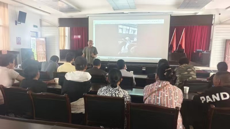 图为:2024年省级残疾人就业创业示范户李军民残疾人讲授生猪养殖技术