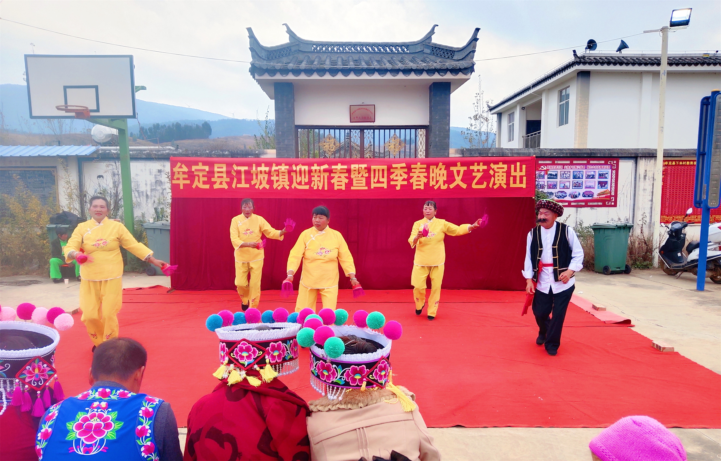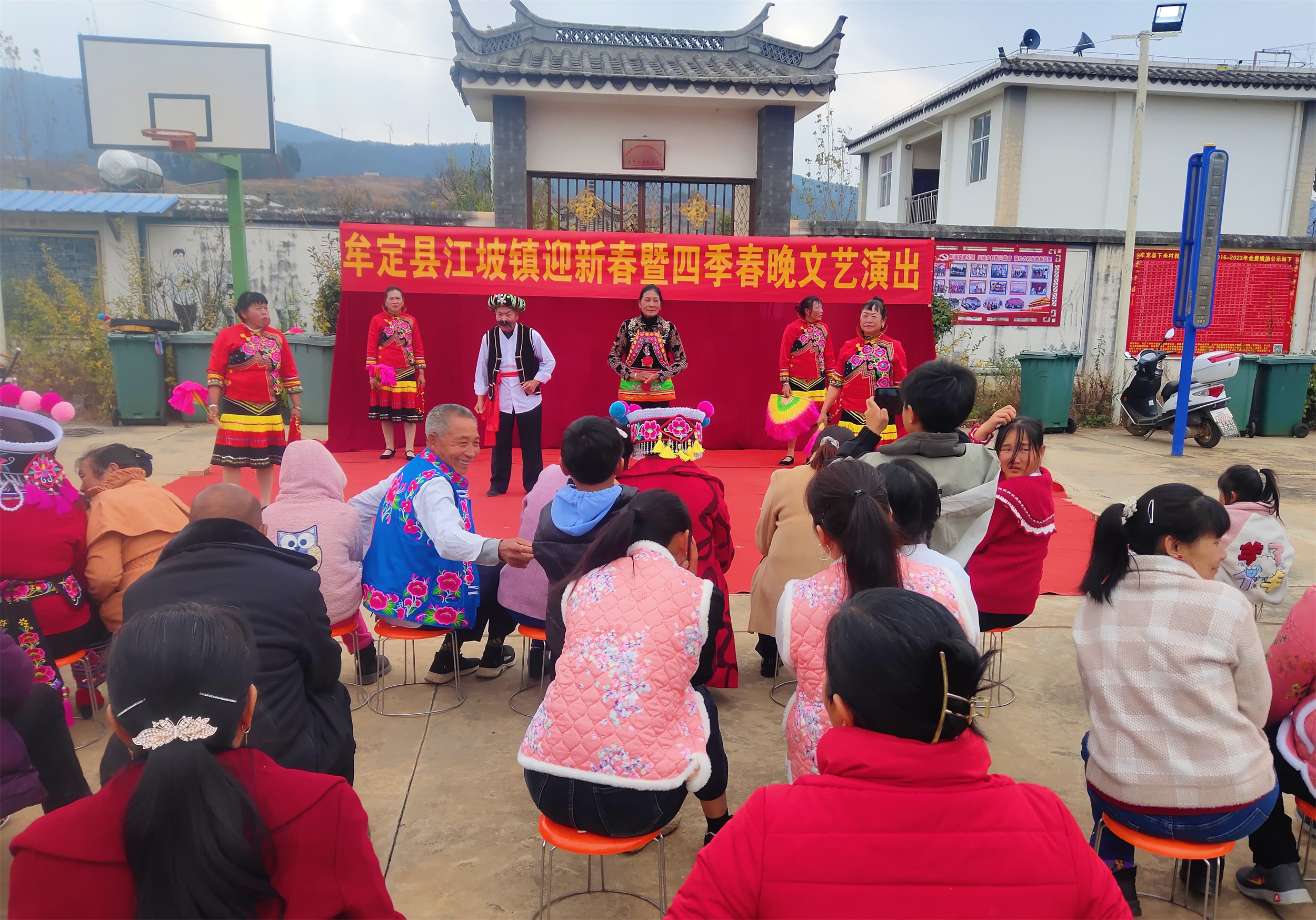 近日,牟定县江坡镇米村村委会下米村文化广场锣鼓喧天、人声鼎沸,由江坡镇米村红色文艺队开展的“迎新春”暨“四季村晚”文艺展演活动如期拉开帷幕,全村“草根”文艺爱好者们为群众热情呈现一场精彩纷呈的乡味艺术盛宴,自编自导的12个剧目紧扣党的二十大精神及省州县两会精神,主题鲜明、内容向上,好戏连台,《欢歌喜唱二十大》生动展现了新时代的丰硕成果以及新时代农民群众的崭新风貌,诠释了乡村振兴路上江坡农民群众的幸福生活;《县第十四次党代会定方向,全民齐心加油干》用轻松活泼的语言、欢快明朗的节奏,唱出了宜居宜业和美乡村的新风采,演绎了大美江坡活力与魅力;《欢乐中国年》呈现出农民喜庆、百姓欢歌的乡村文化繁荣景象,彰显了新时代农民蓬勃向上精气神……活动现场气氛热烈,观众情绪高涨,掌声喝彩声经久不息,吸引逾300名当地群众和周边群众观演。