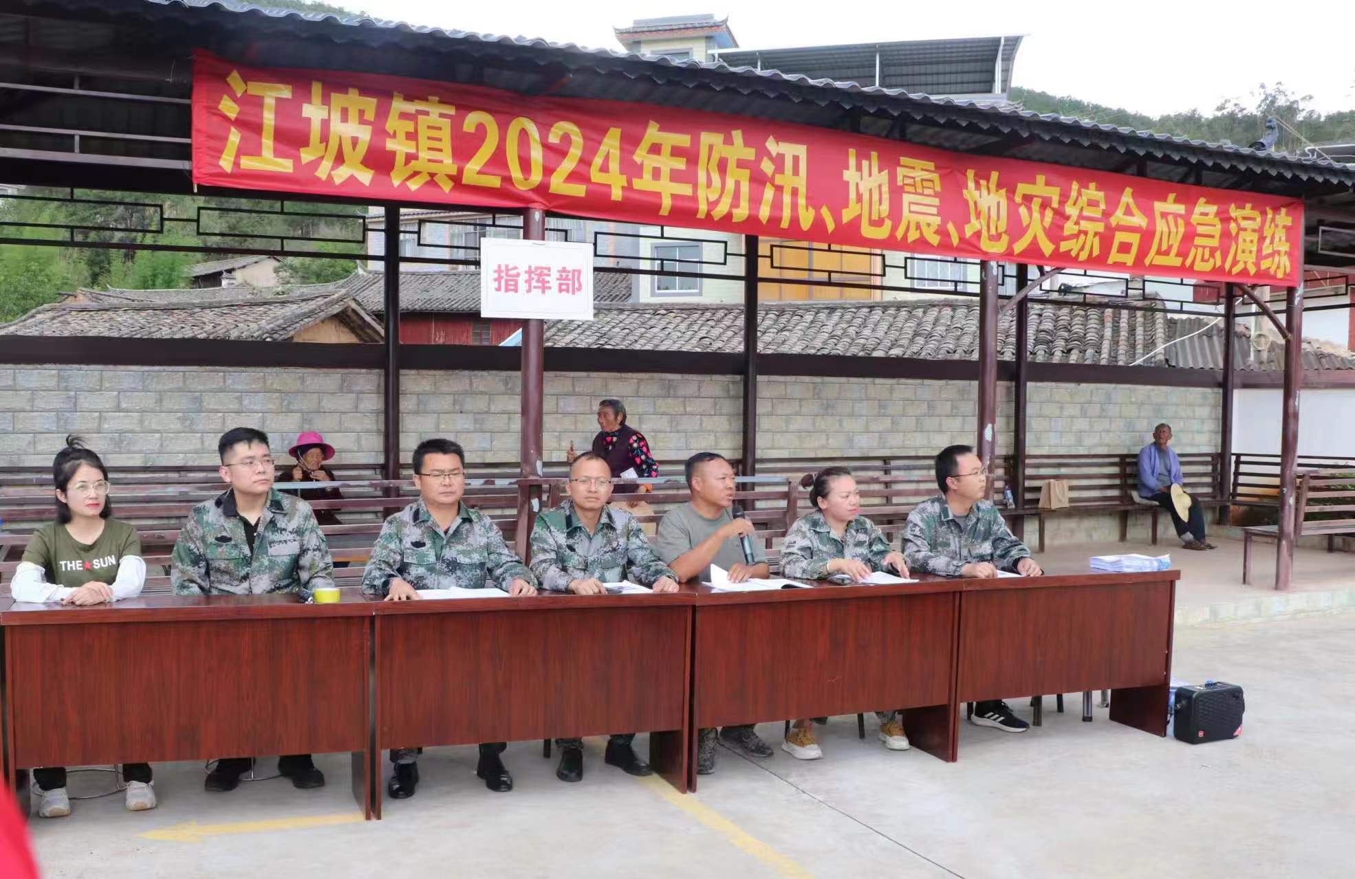 为认真贯彻落实习近平总书记关于防灾减灾救灾重要论述和系列批示指示精神,牢固树立“人民至上、生命至上”的理念,有效提高应对突发事件的综合处置能力和增强公众防灾减灾救灾意识。近日,江坡镇开展2024年山洪地震地质灾害综合应急演练。镇党政班子成员,相关办(中心、所)负责人及部分人员,镇派出所、卫生院、供电所等部分人员,镇综合应急救援队员,13个村党总支书记、各村地灾监测点小组长、部分村民小组长及模拟地灾隐患点受威胁群众等150余人参加。
