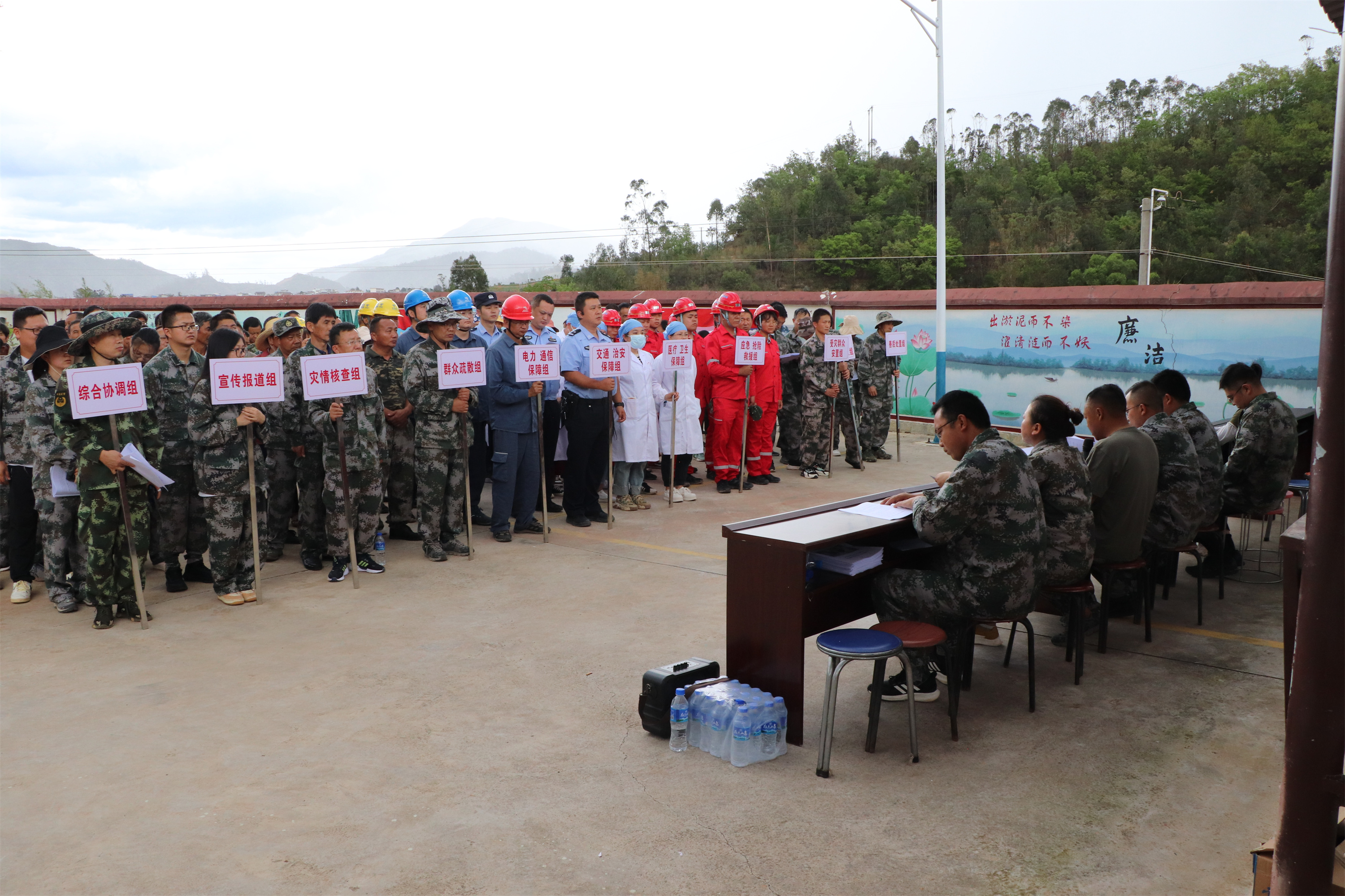 此次演练模拟江坡镇龙排村委会沙罗镇村发生6.1级地震和强降雨,极大可能引发山洪灾害;龙排双龙闸水库外坝坡异滑,可能出现溃坝风险;与此同时,沙罗镇村地质灾害监测点出现险情,对群众生命财产造成严重威胁。部分道路、电力、通信等设施出现中断,形势十分严峻。