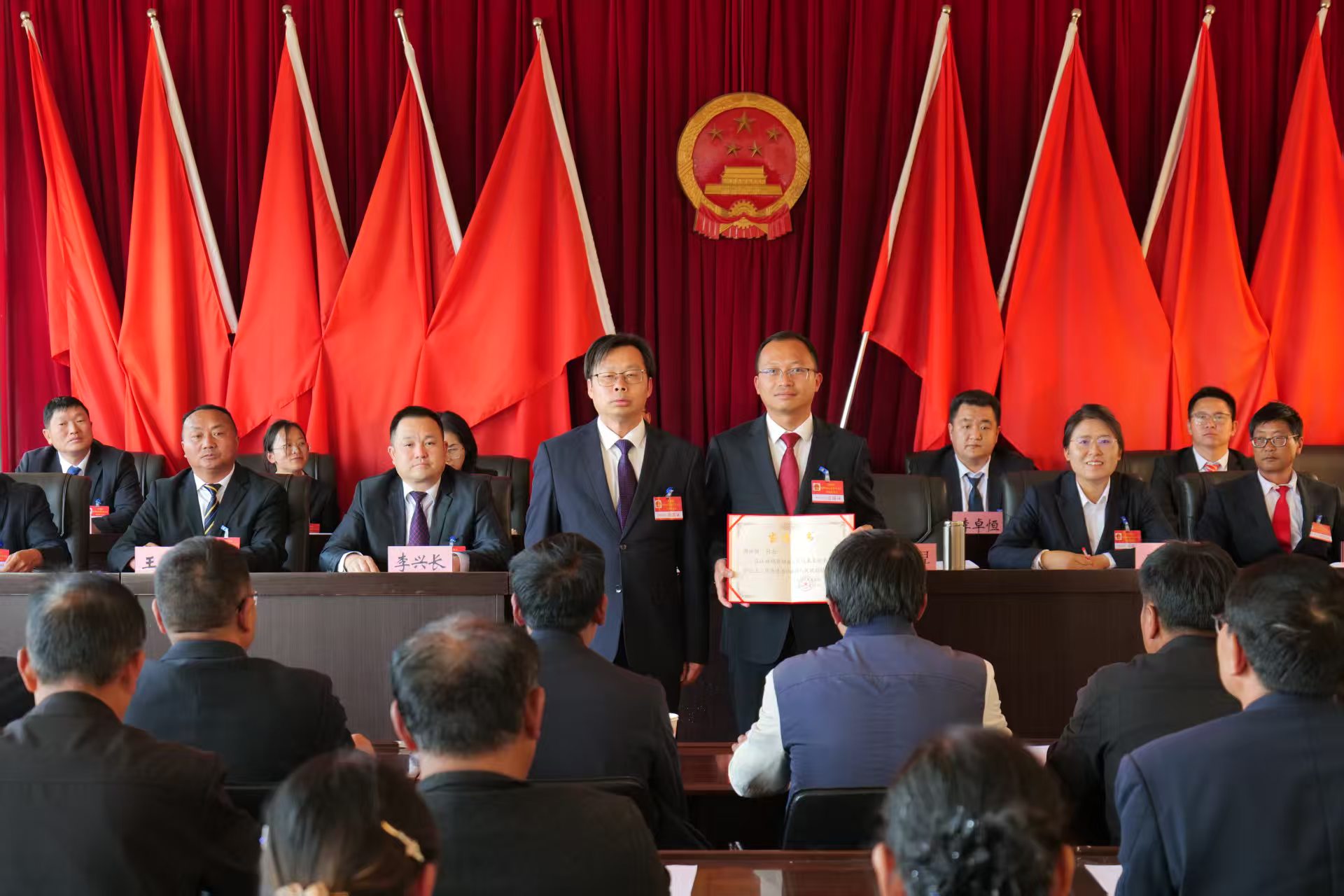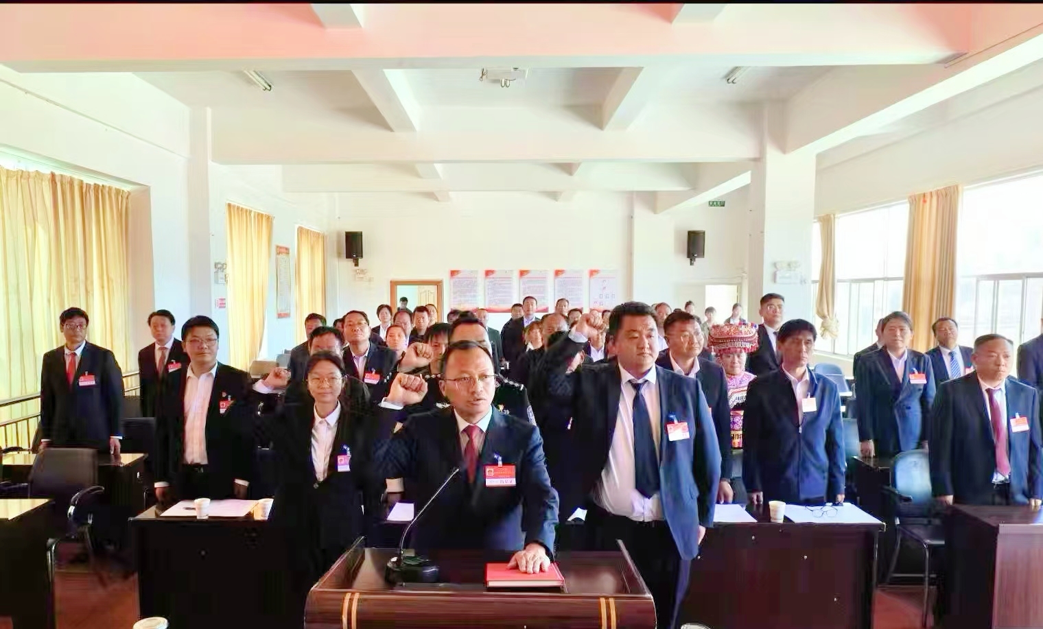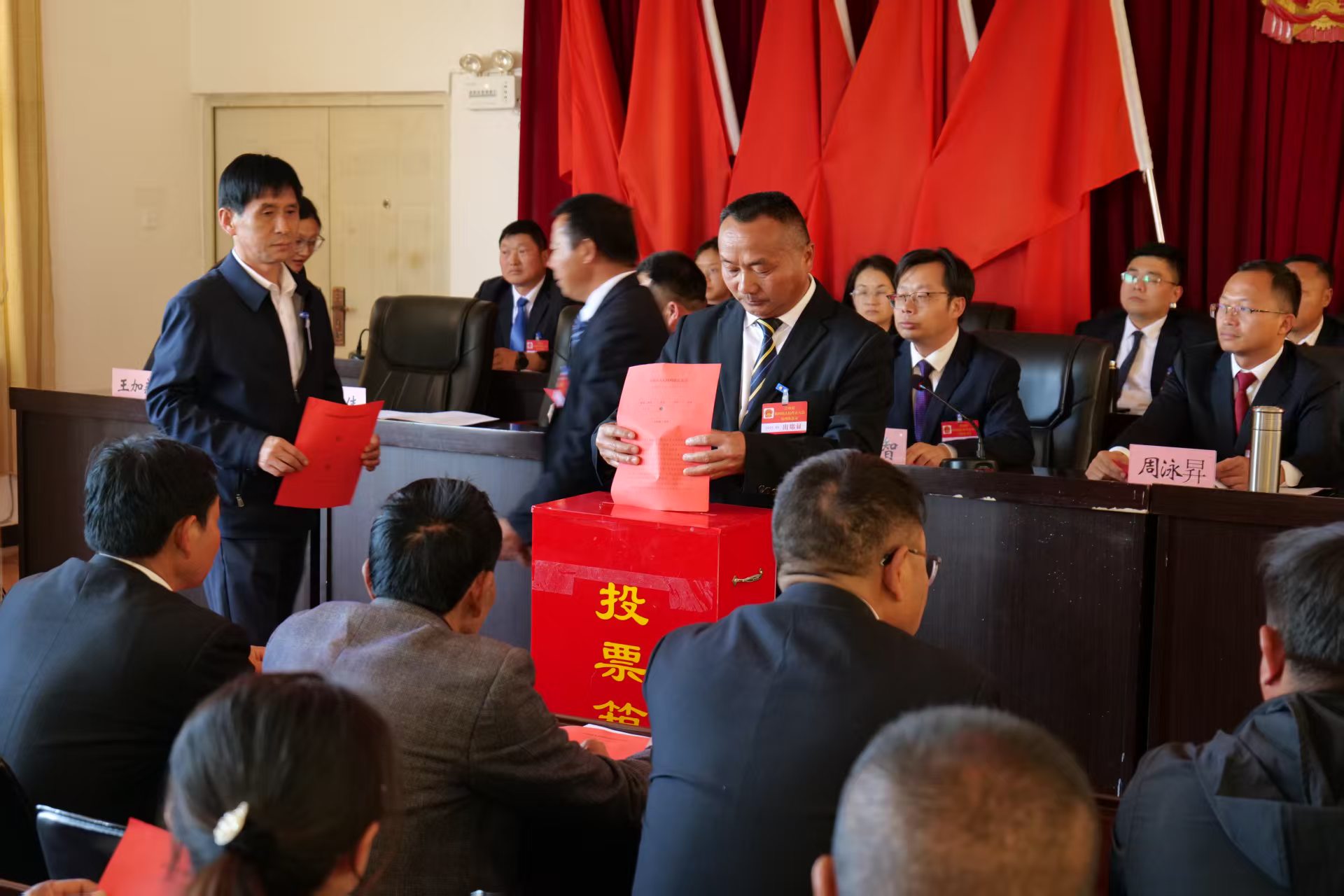 ▲会议进行了大会选举,周泳昇同志全票当选为江坡镇人民政府镇长